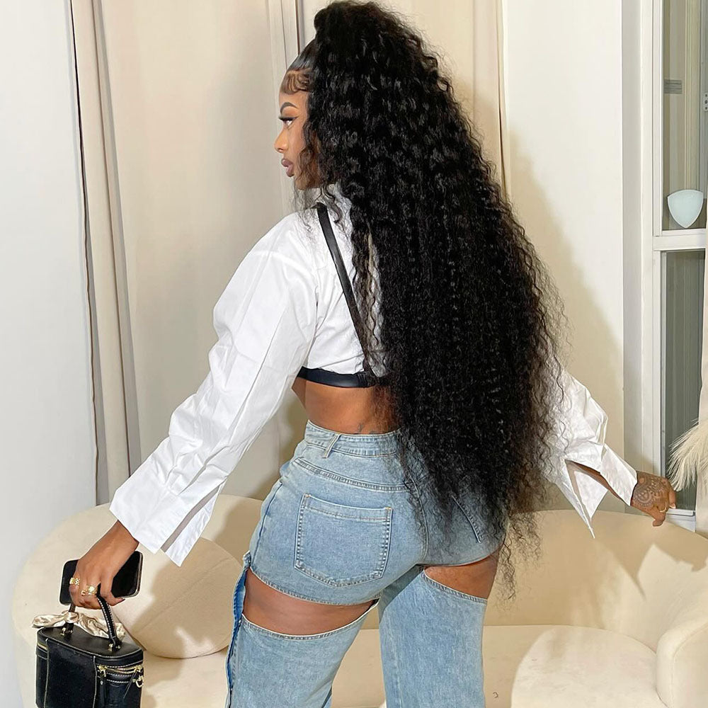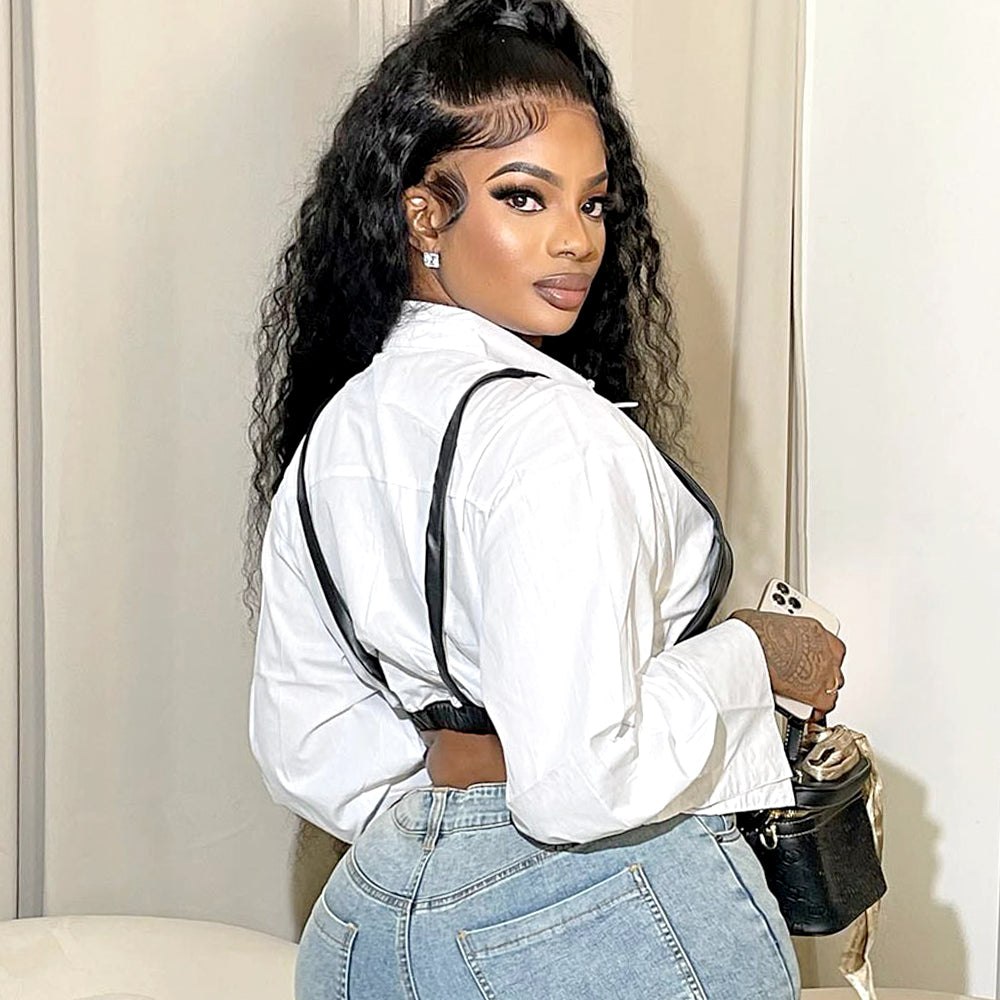 Long Sleeve Chest Wrap Leather Bra Shirt