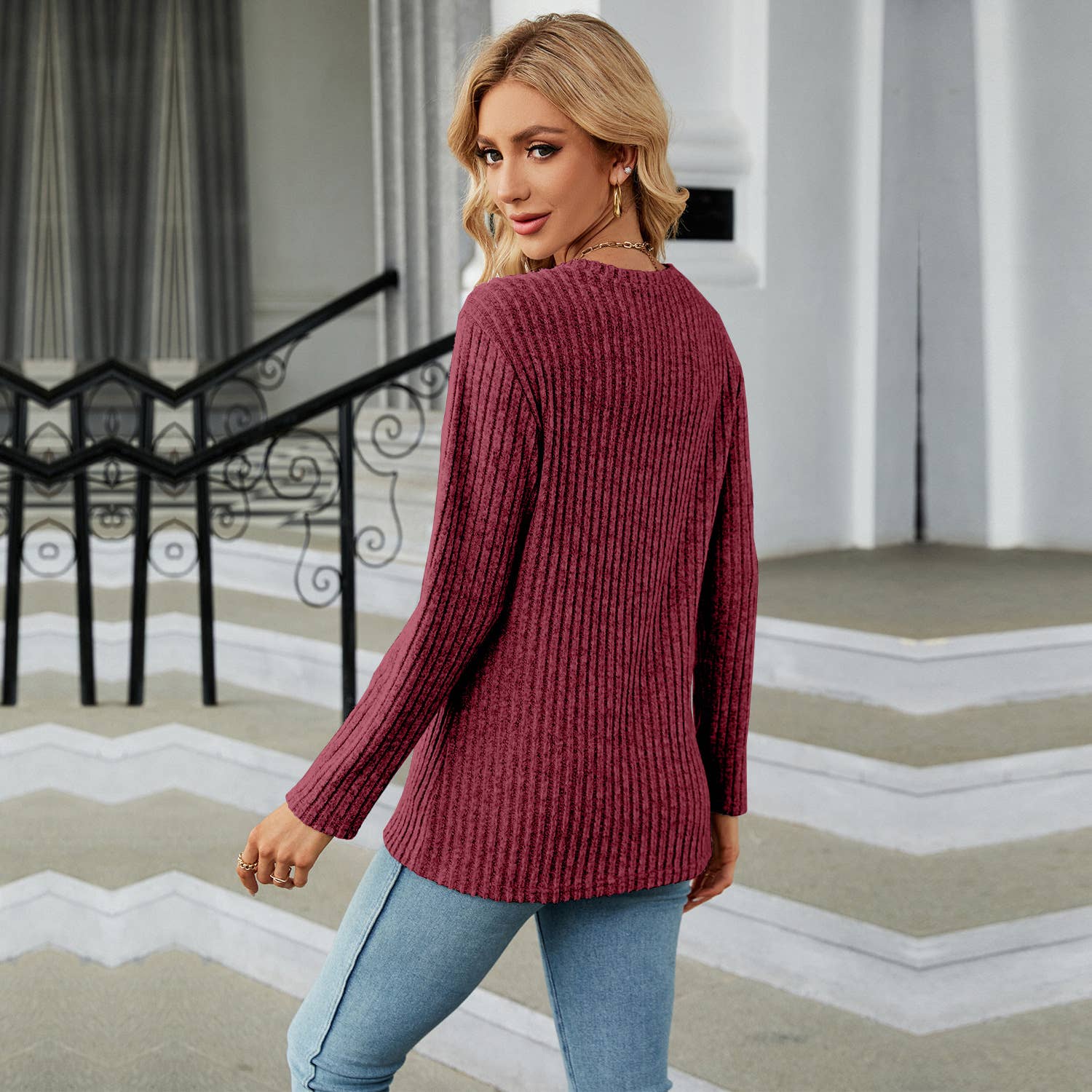 LONG SLEEVE CREW-NECK TULIP HEM KNIT BASE