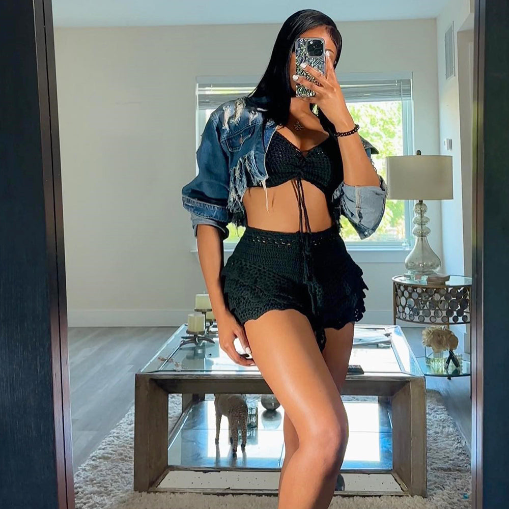 Long Sleeve Irregular Crop Open Front Denim Jacket
