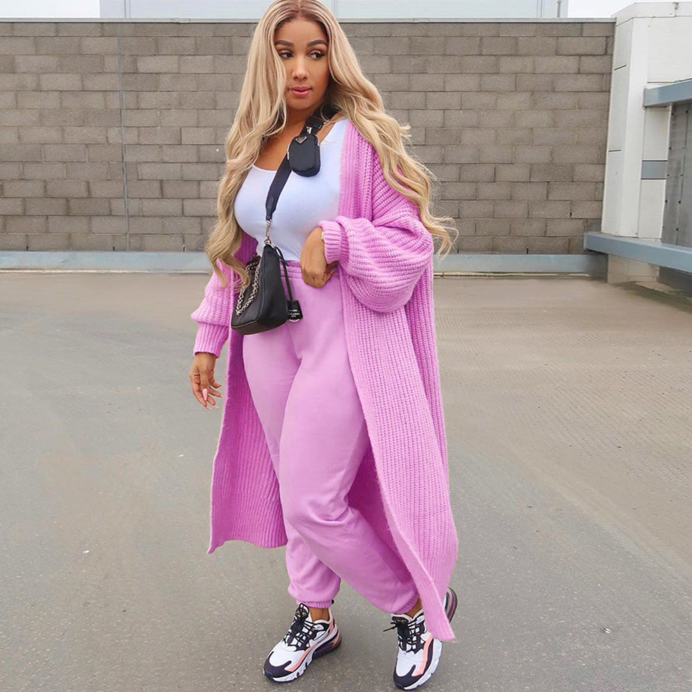 Long Sleeve Open Front Loose Fit Knitted Long Cardigan