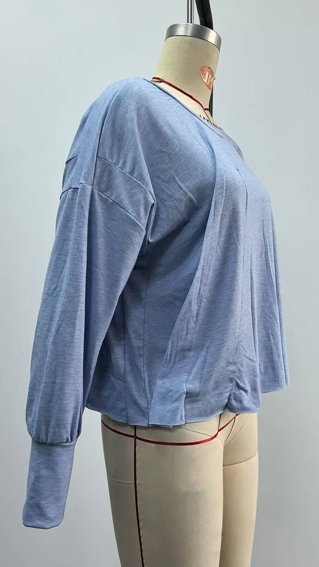 Long sleeve solid color loose back cut-out top