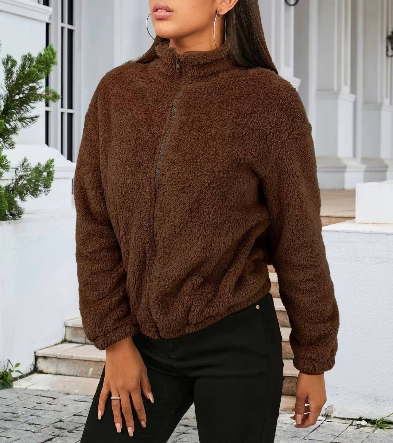 LONG SLEEVE SOLID COLOR PLUSH LOOSE WARM CARDIGAN