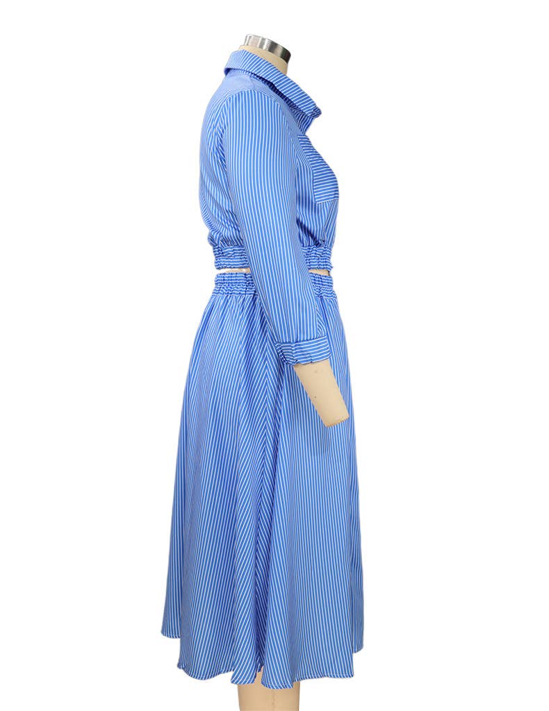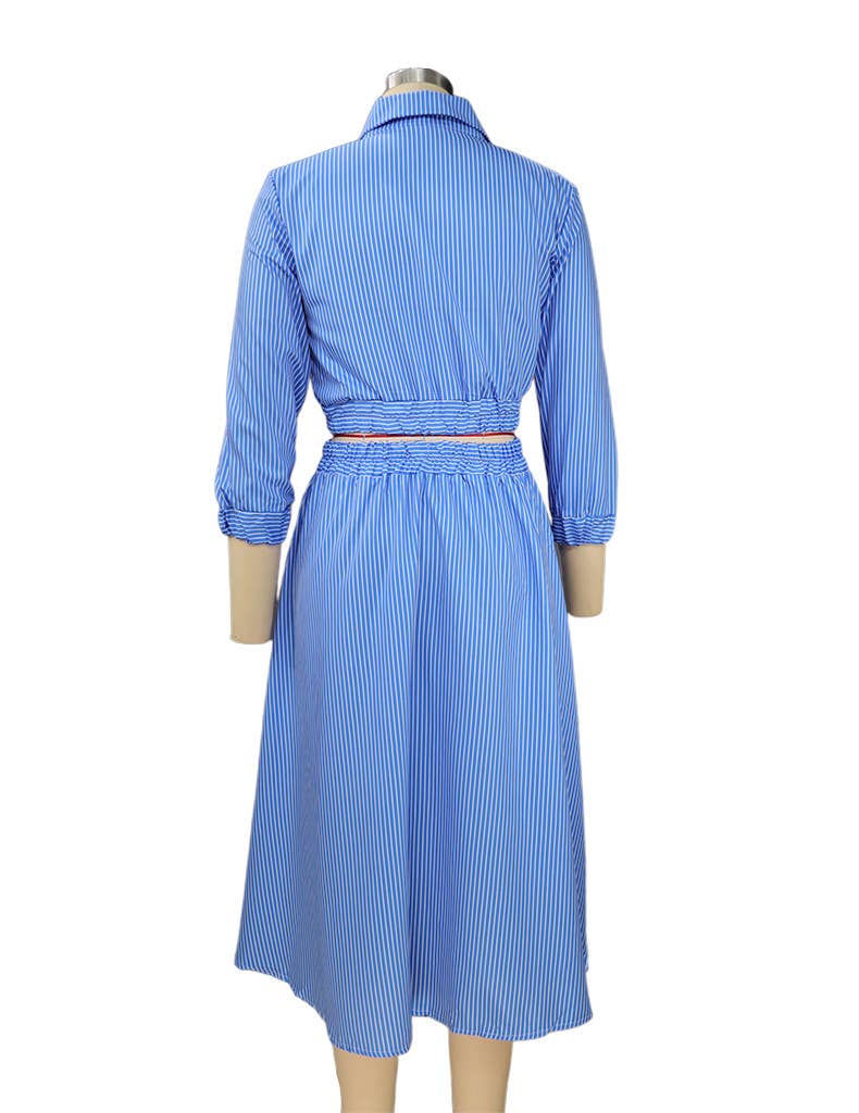 LONG SLEEVE STRIPED SHIRT SKIRT TWO-PIECE SET