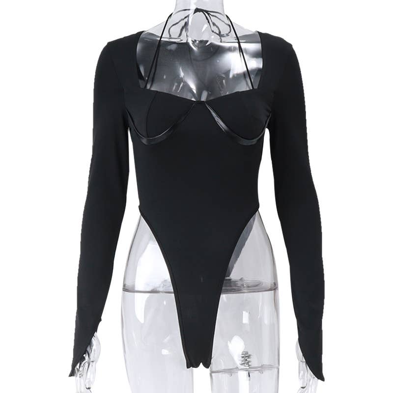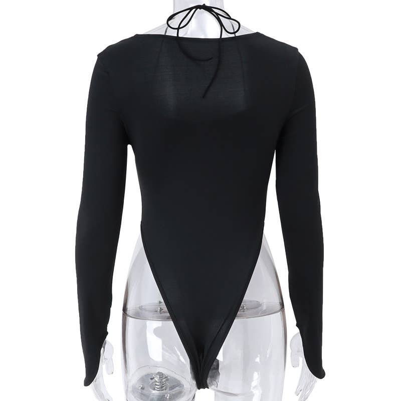 Long-sleeved solid-color jumpsuit with a neckline