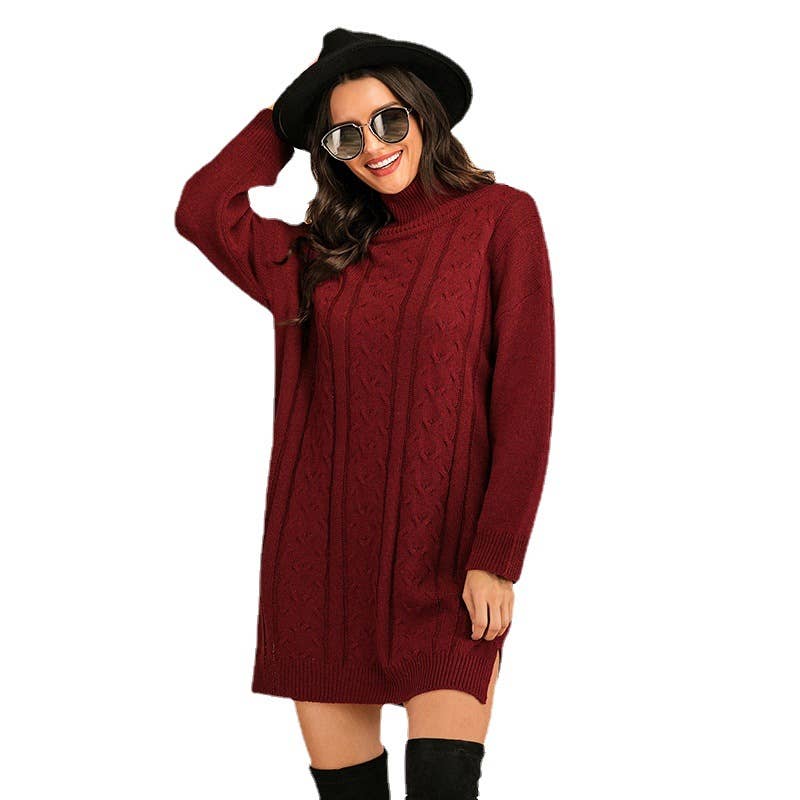 LONG-SLEEVED TWIST TURTLENECK SWEATER DRESS