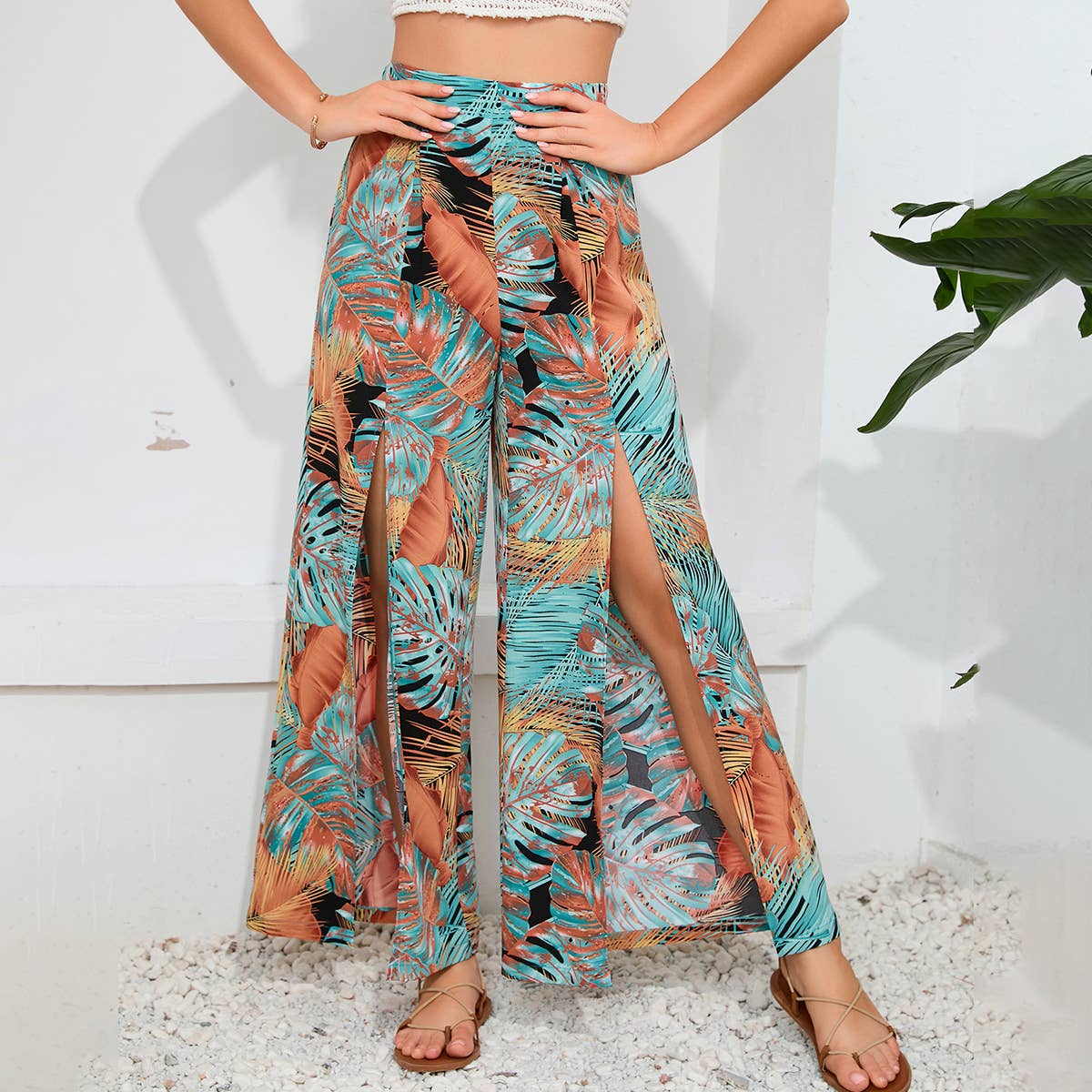 LOOSE CASUAL WAIST SLIT PANTS WIDE LEG PANTS