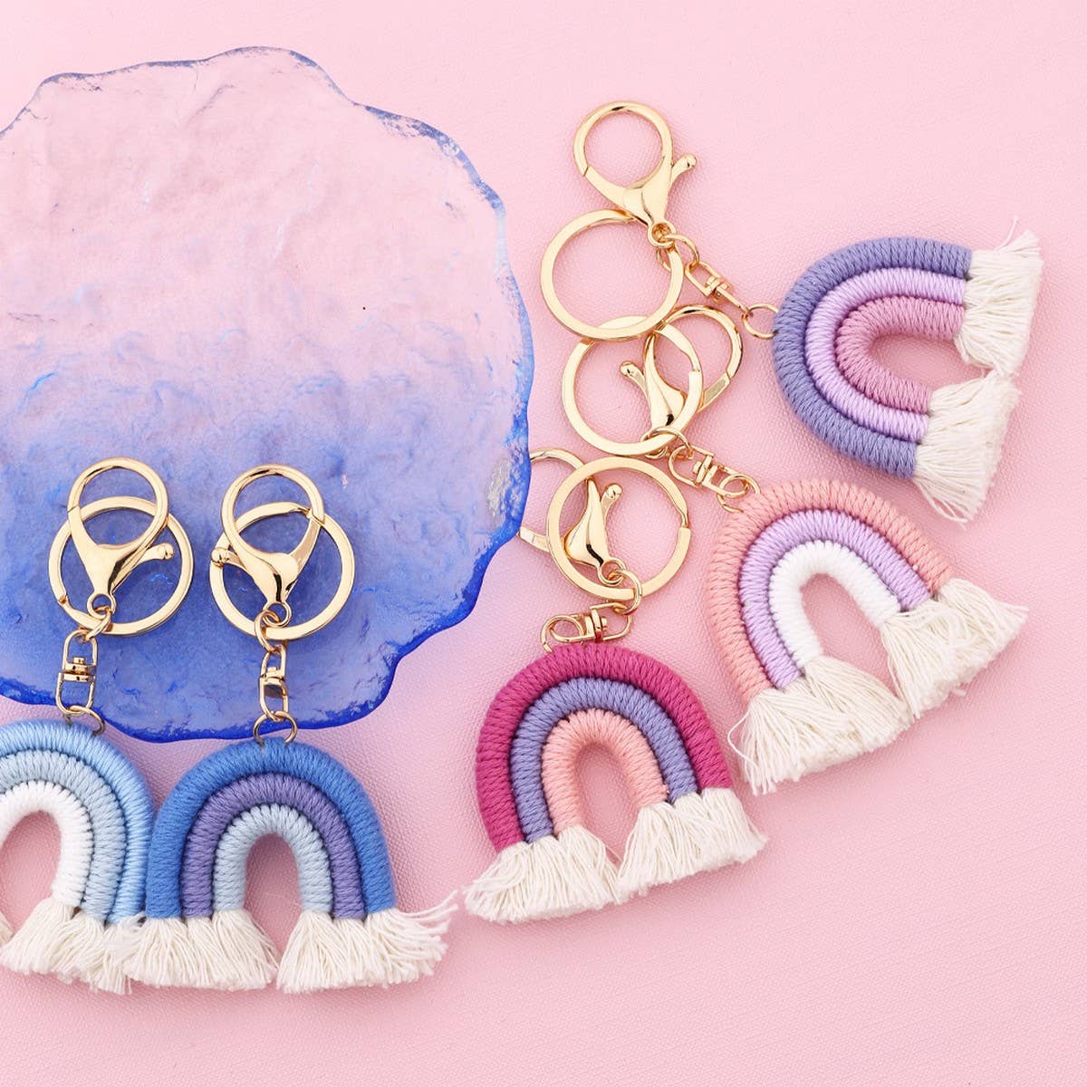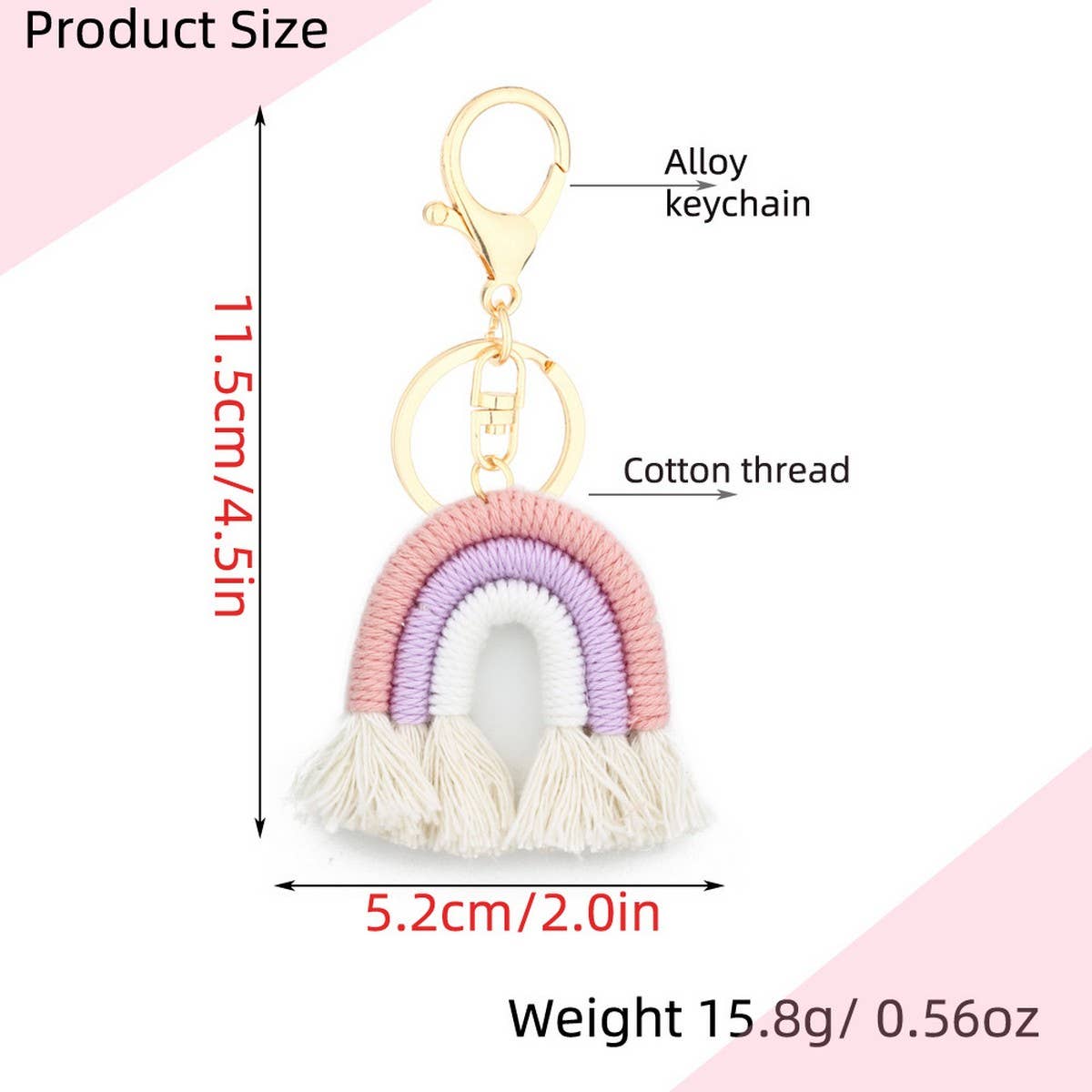 Macrame Rainbow Keychain Boho Car Hanging Decor_CWAB5031