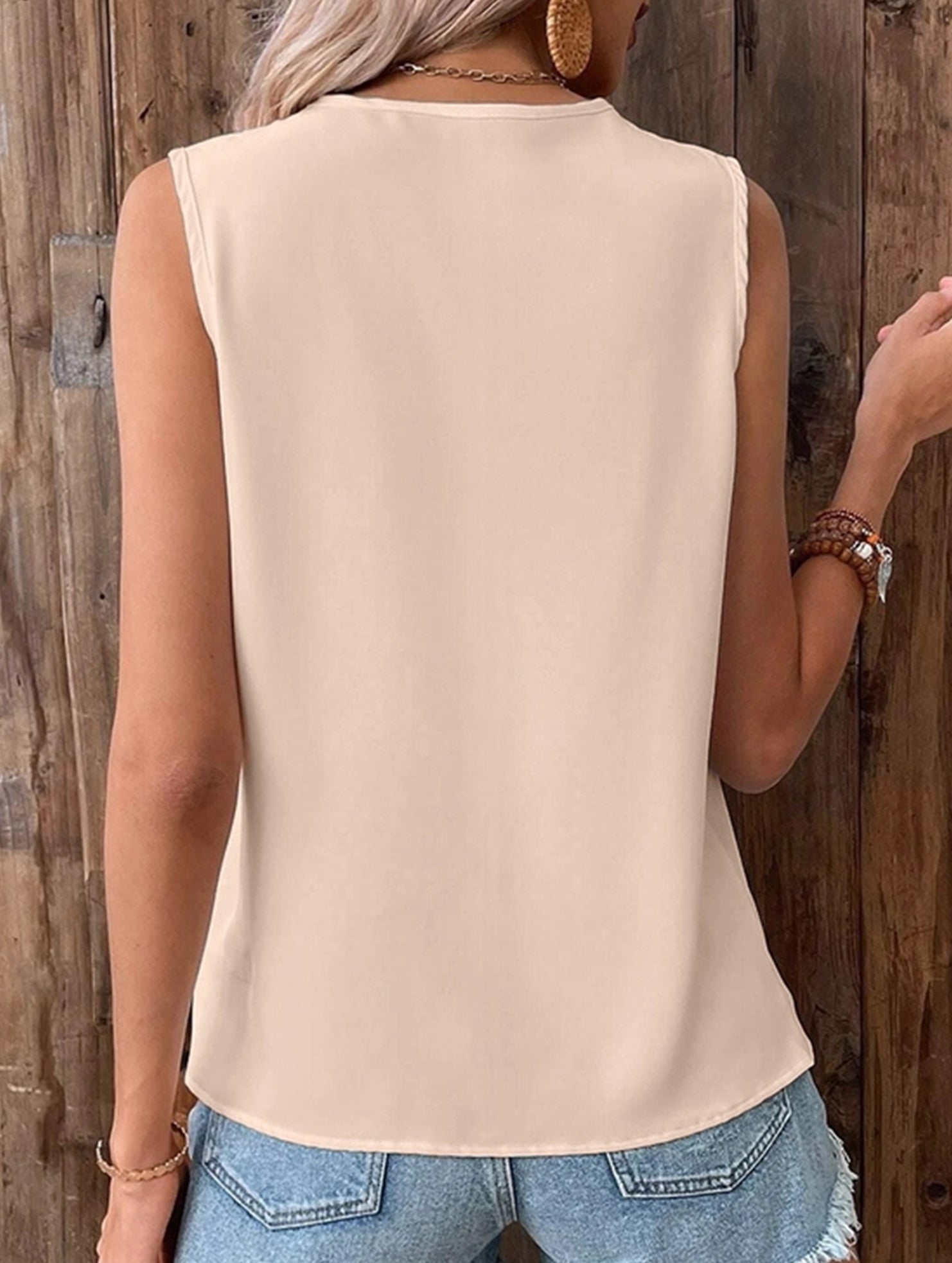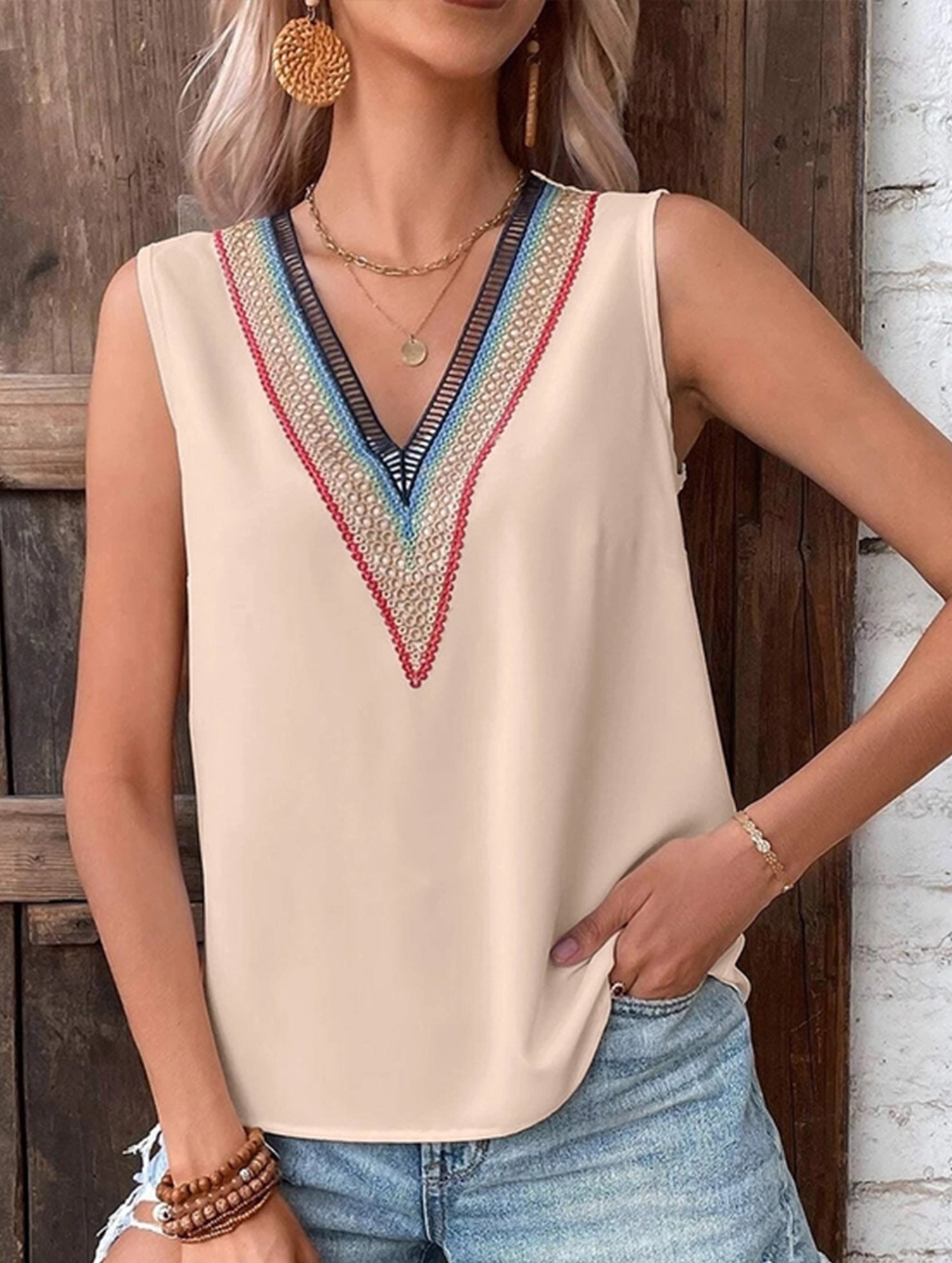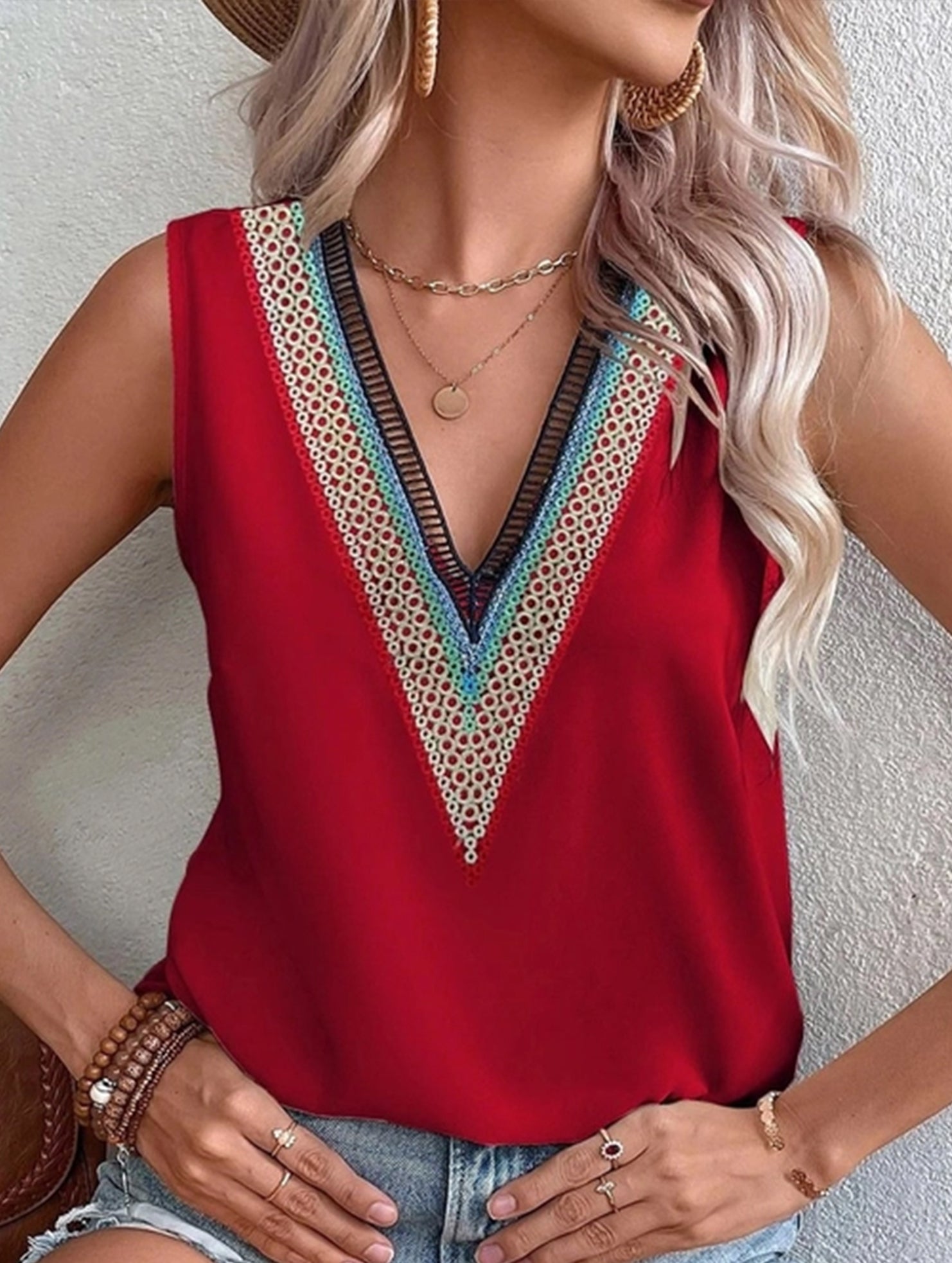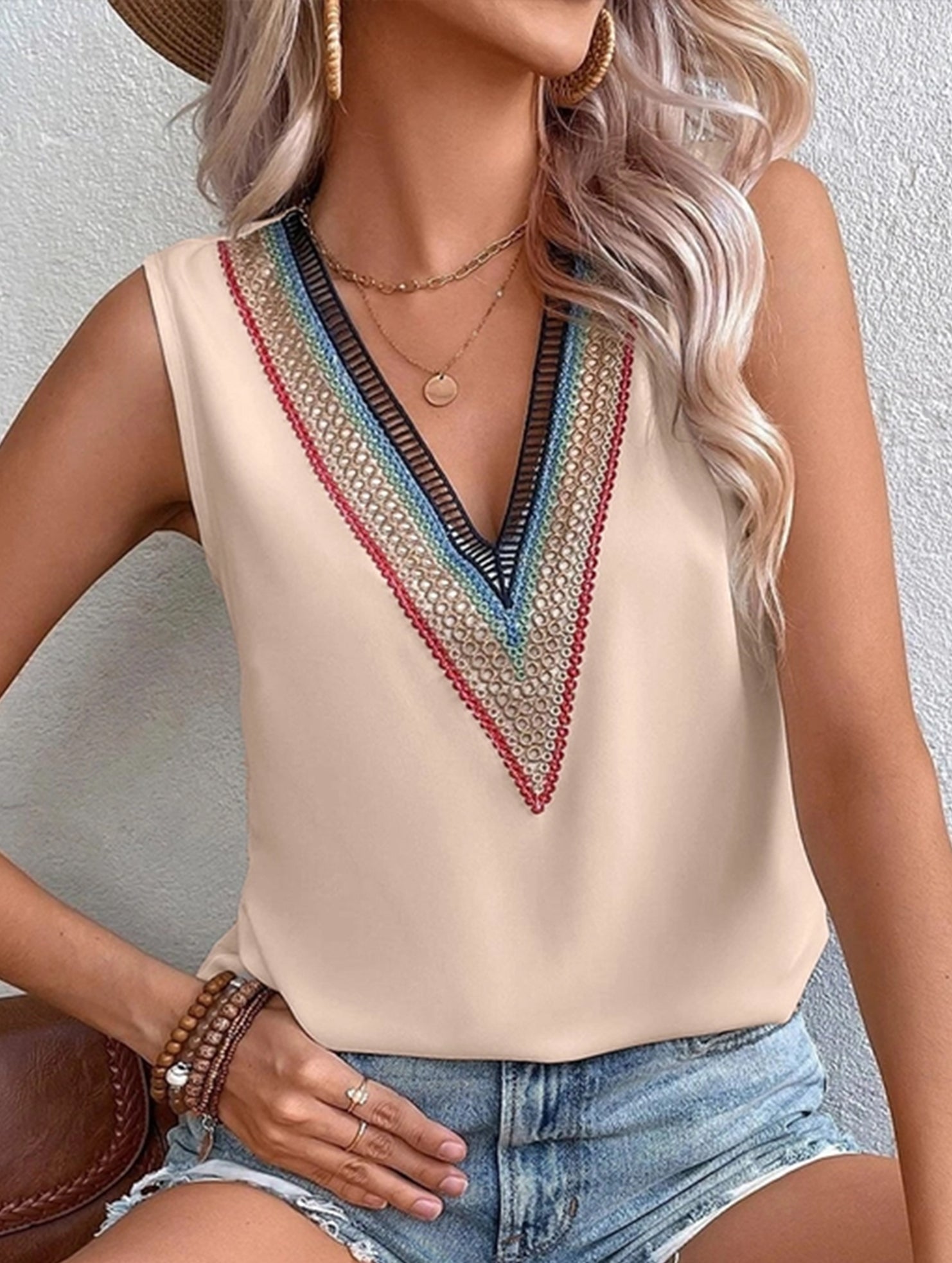 MULTICOLOR LACE V NECK SLEEVELESS BLOUSE