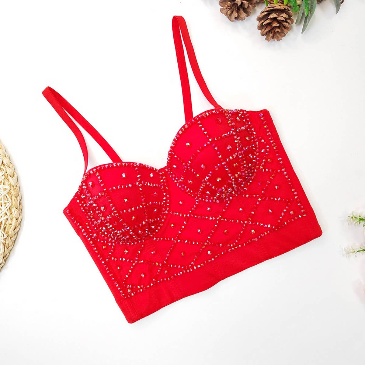 NEW CRYSTAL STRAP SEXY HERRINGBONE CORSET