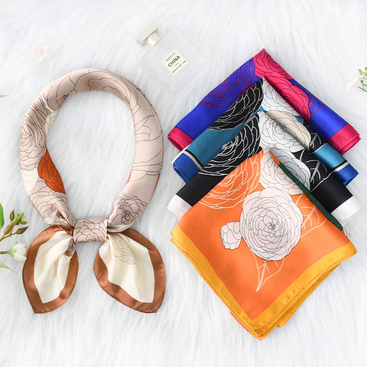 NEW FLORAL FLOWER SQUARE SCARF\nSIZE: OS (2)\n100% POLYESTER\nLENGTH:27.56"*27.56"(70cm*70cm)\nMADE IN CHINA\n\nHIJAB,BEST,SELLER,HOT,SHOP,BEAUTIFUL,STUNNING,CHIC,SWEET,CLASSIC,WESTERN,PROMOTION,FACTORY,WHOLESALE,FAVORITE,NEW,DESIGN,STRIPE,CHECK,COLDPROOF,PRINT,EXQUISITE,LONG,THIN,SQUARE SCARF, LACE, POLKA DOTS, THIN STYLE, BAG HANDLE RIBBON, SOLID COLOR, BULK HEADBAND, POPULAR STYLE, NEW PRODUCT, WINTER, AUTUMN, SPRING, BEST-SELLING, WHOLESALE WITHOUT TAG, OUTDOOR SPORTS, WARM, NOVELTY, BULK, CLEARANCE, 2024 NEW, BRAND NEW, BEST PRICE, FASHION, FLASH SALE, HIGH QUALITY, LOW PRICE, NEW TREND, SPECIAL OFFER, DIRECT SALE, EASY TO SELL, CUTE, PEARL, THICK, HEADWEAR