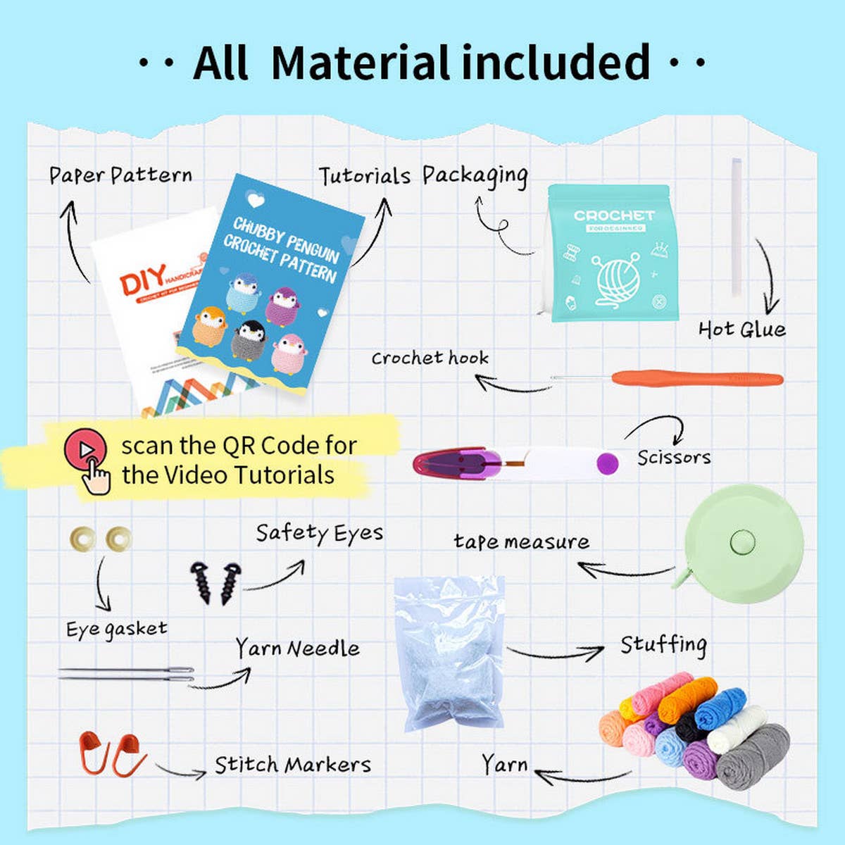 NEW PENGUIN DOLL ORNAMENT CROCHET MATERIAL PACK\nSIZE:OS (1)\n100% ACRYLIC\nMADE IN CHINA\n\nCROCHET KIT,CROCHET KITTY,CROCHET KIT KIDS,CROCHET KIT ANIMAL,CROCHET KITCHEN,CROCHET KIT WITH HAT PATTERN,CROCHET KIT WITH SCARF PATTERN,CROCHET KIT WITH BLANKET PATTERN,CROCHET KIT WITH ACCESSORIES,CROCHET KIT, CUTE, KEY CHAIN HOOK, DIY, ORANGE, DINOSAUR, DOLL, ACCESSORIES, MATERIAL PACKAGE,ELEPHANT CROCHET,RETRO, BEST, BRAND NEW, BEST PRICE, BEST SELLING, CHEAP, CLEARANCE, FACTORY PRICE, NEW DESIGN, NEW PRODUCT, NEW STYLE, NEW TREND, TOP FASHION, SPECIAL OFFER, NOVELTY, SPRING, SUMMER, AUTUMN AND WINTER, GEOMETRIC, WHOLESALE, NO LABEL ,TRAVEL, OUTDOOR, LEISURE, AMAZING PRICE, SIMPLE, FASHIONABLE, HOLLOW, LARGE, PONYTAIL CLIP ACCESSORIES, THICKENED, GRADIENT, CHILDREN, WOMEN, DECORATIONS, HEART-SHAPED, BIRTHDAY, PARTY, GIRL, MEN, FLOWER, MUG, GREETING CARD, VALENTINE'S DAY GIFT SET, VALENTINE'S DAY ACCESSORIES, VALENTINE'S DAY