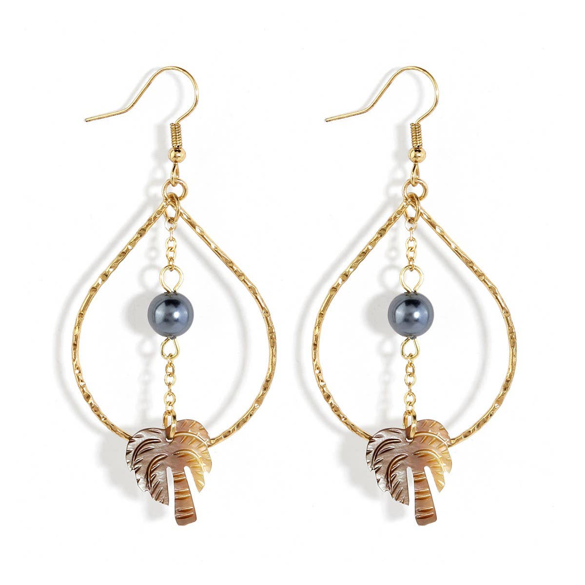 NICHE HOLLOW BLACK SHELL PALM TREE EARRINGS_CWMM4364