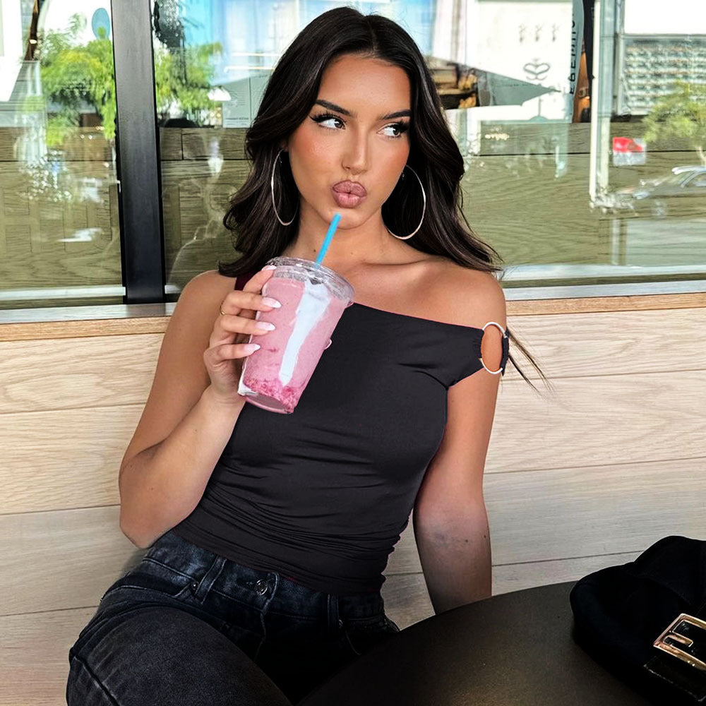Oblique Collar One Shoulder Sexy Slim Fit Top