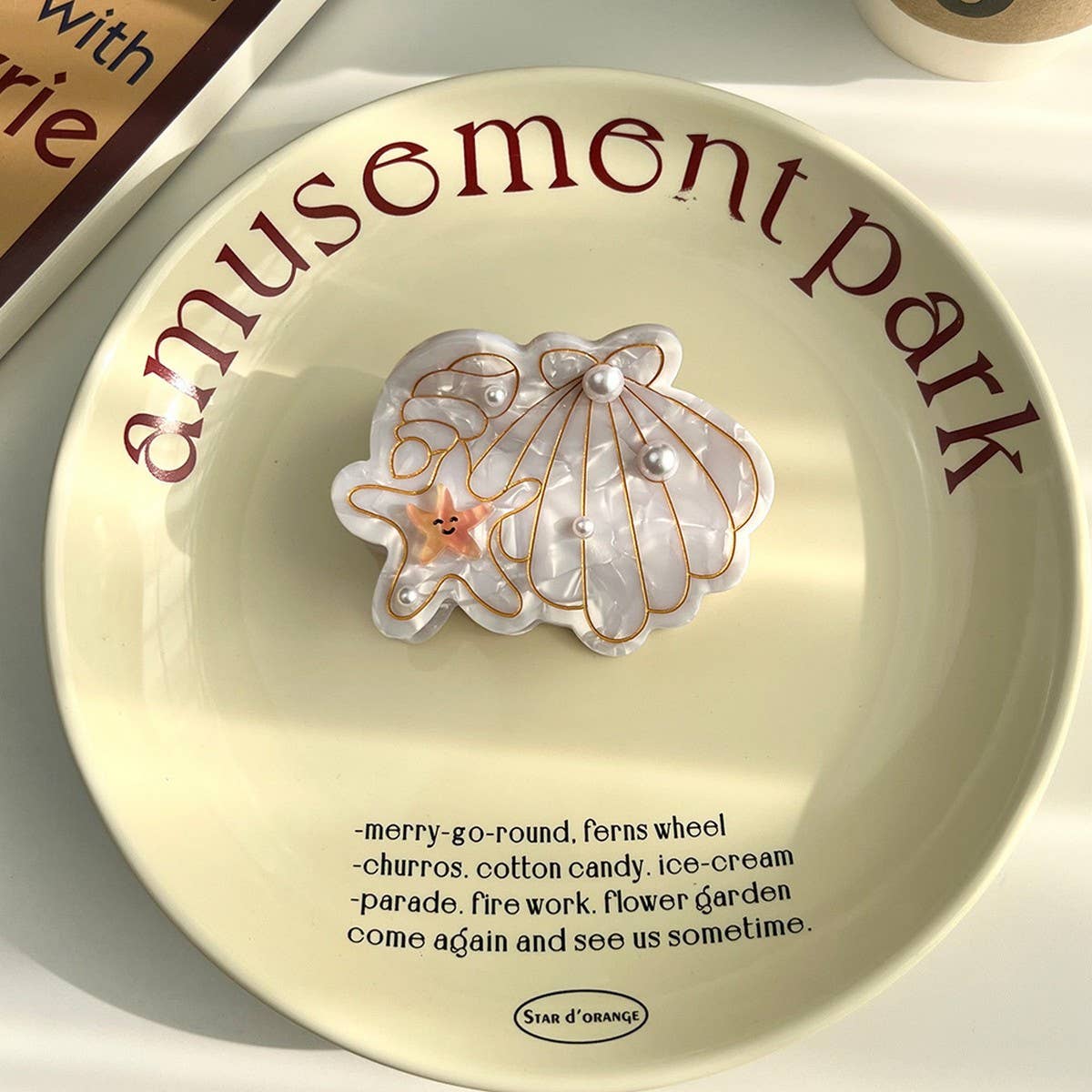 Ocean Shell & Starfish Hair Claw, Pearl Shark Clip_CWAHA5898