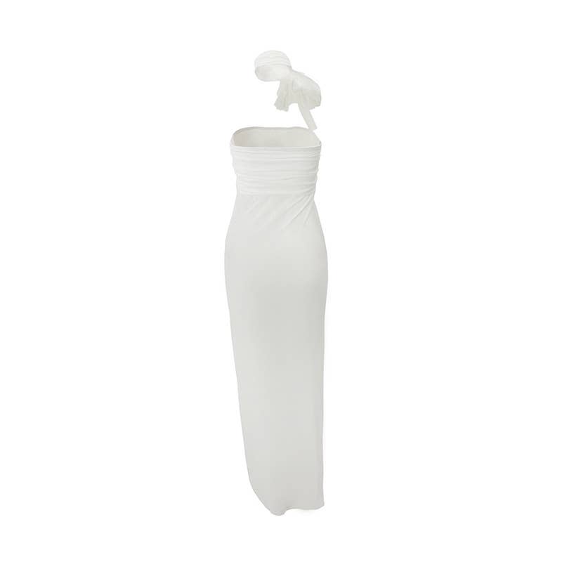 Off Shoulder Bow Mesh Asymmetrical Dress