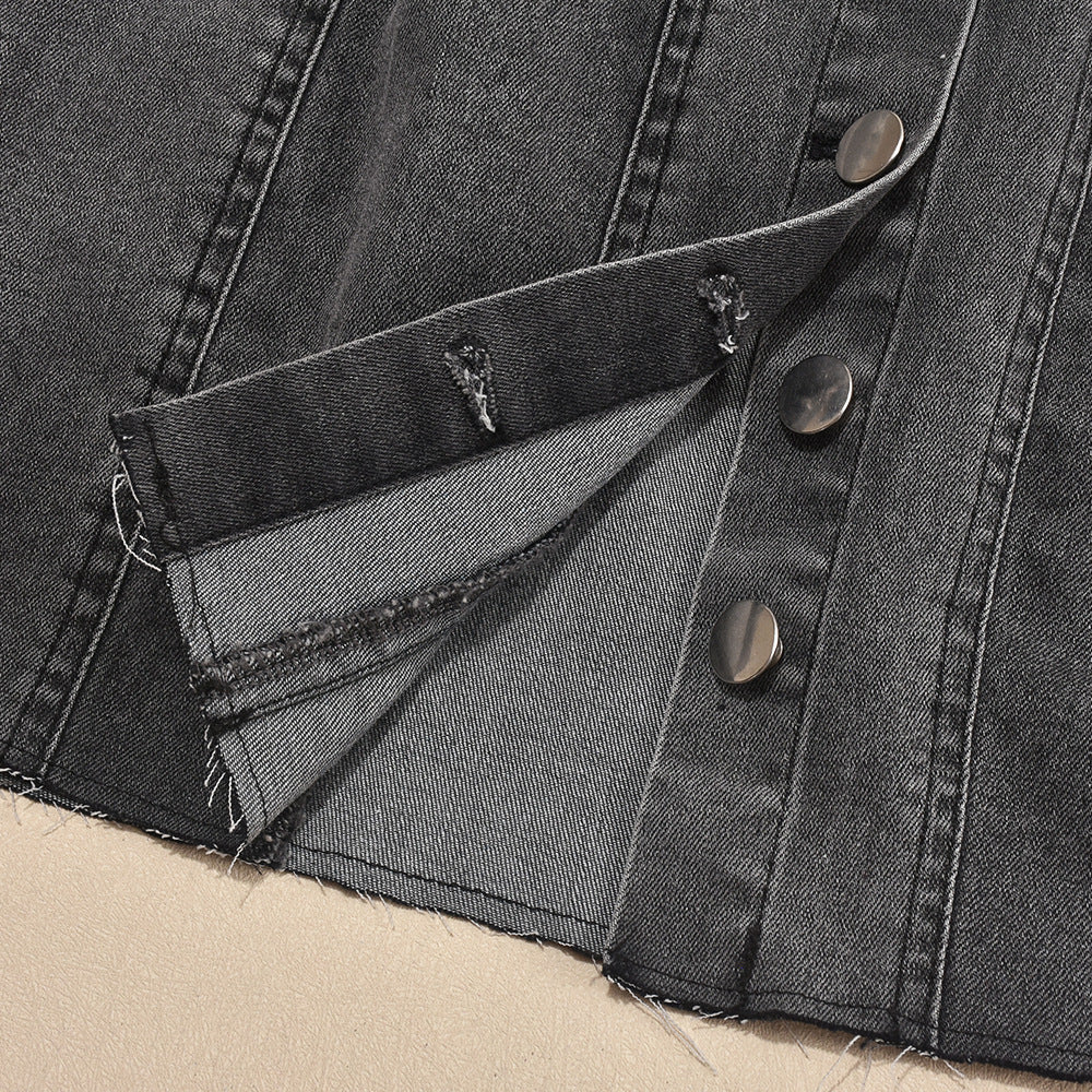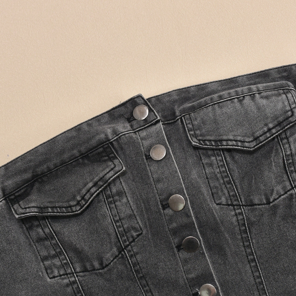 Off Shoulder Buttoned A Line Washed Denim Dress