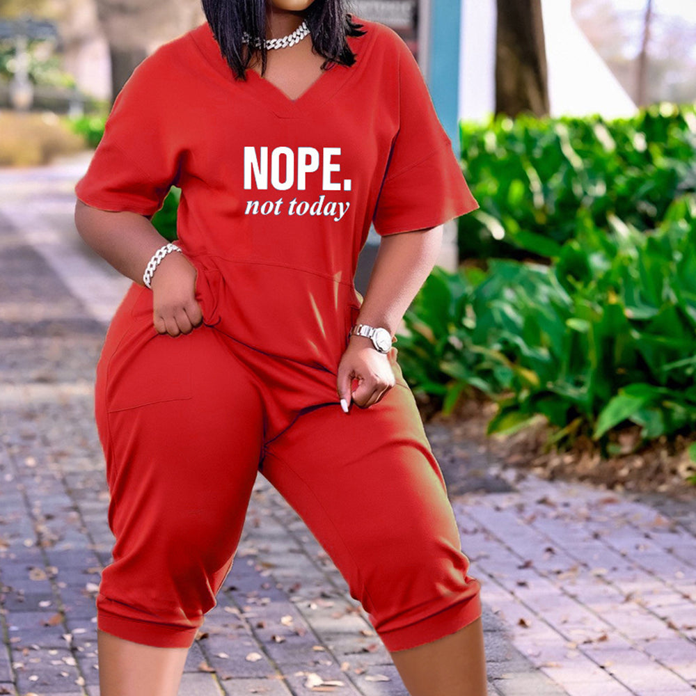 Offset V Neck Letterring Loose Fit Jumpsuit