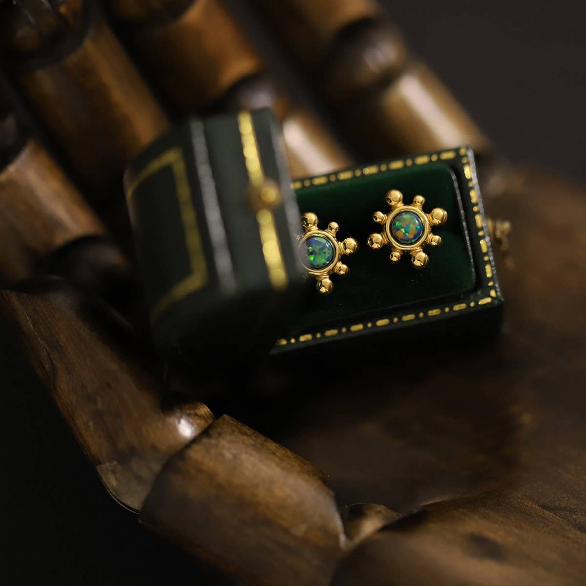 Opal Sunflower Stud Earrings Gold Electroplated_CWAJE5101