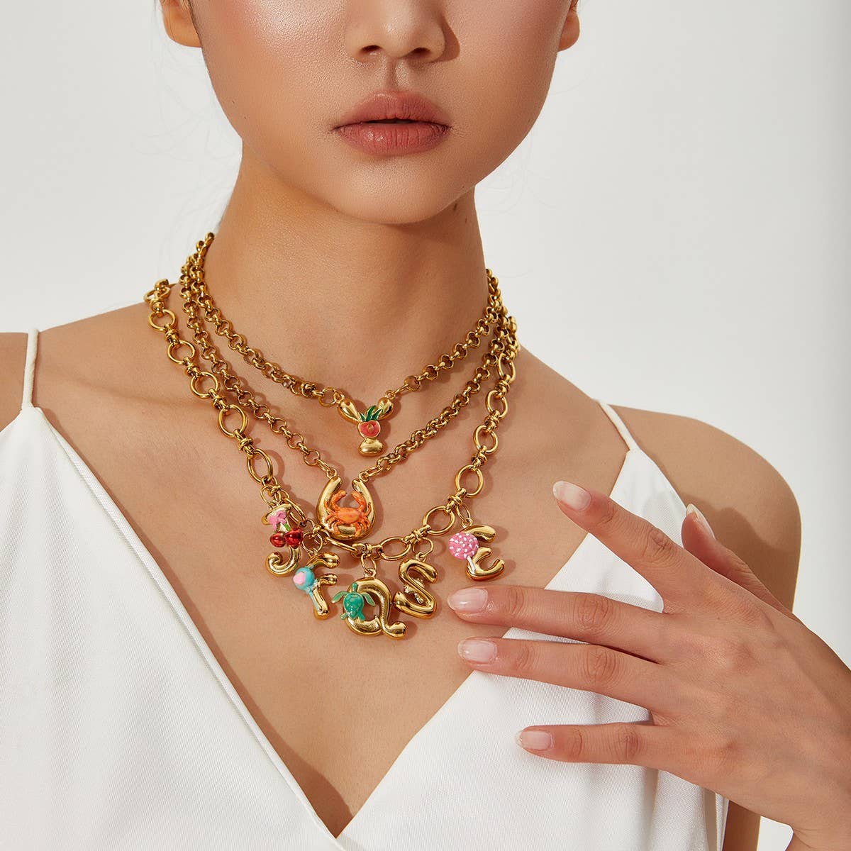 Original Stainless Steel Letter Necklace withEnamel_CWMM8836