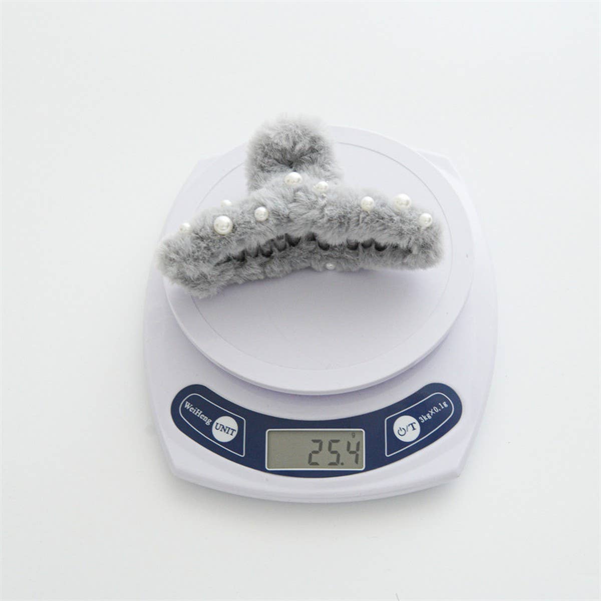 PEARL FUZZY HAIR CLAW CLIPS FOR FALL,WINTER