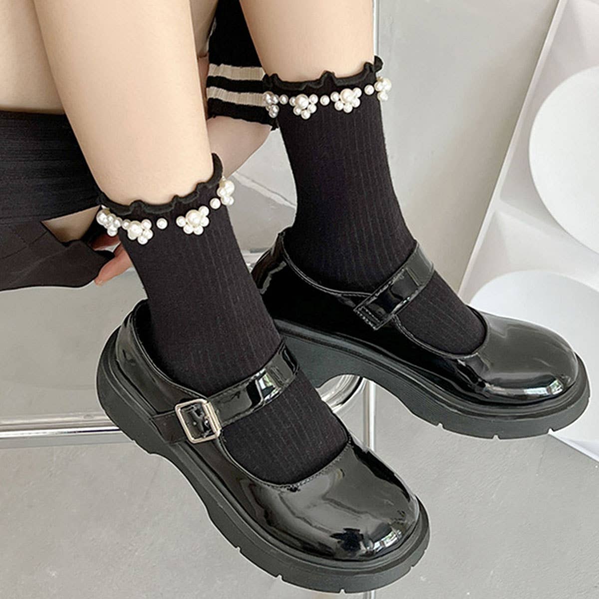 PEARL ORNAMENT COTTON CREW SOCKS SIZE:OS(2) 100% COTTON MADE IN CHINA