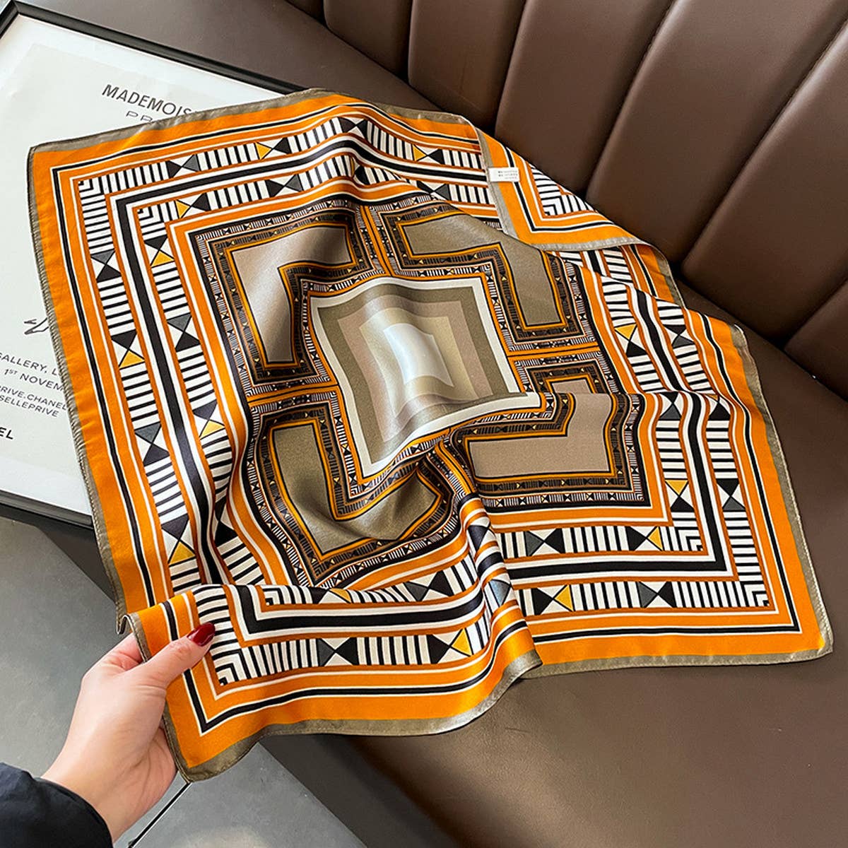 ??Product Name: Classic Checkered Silk Square Scarf