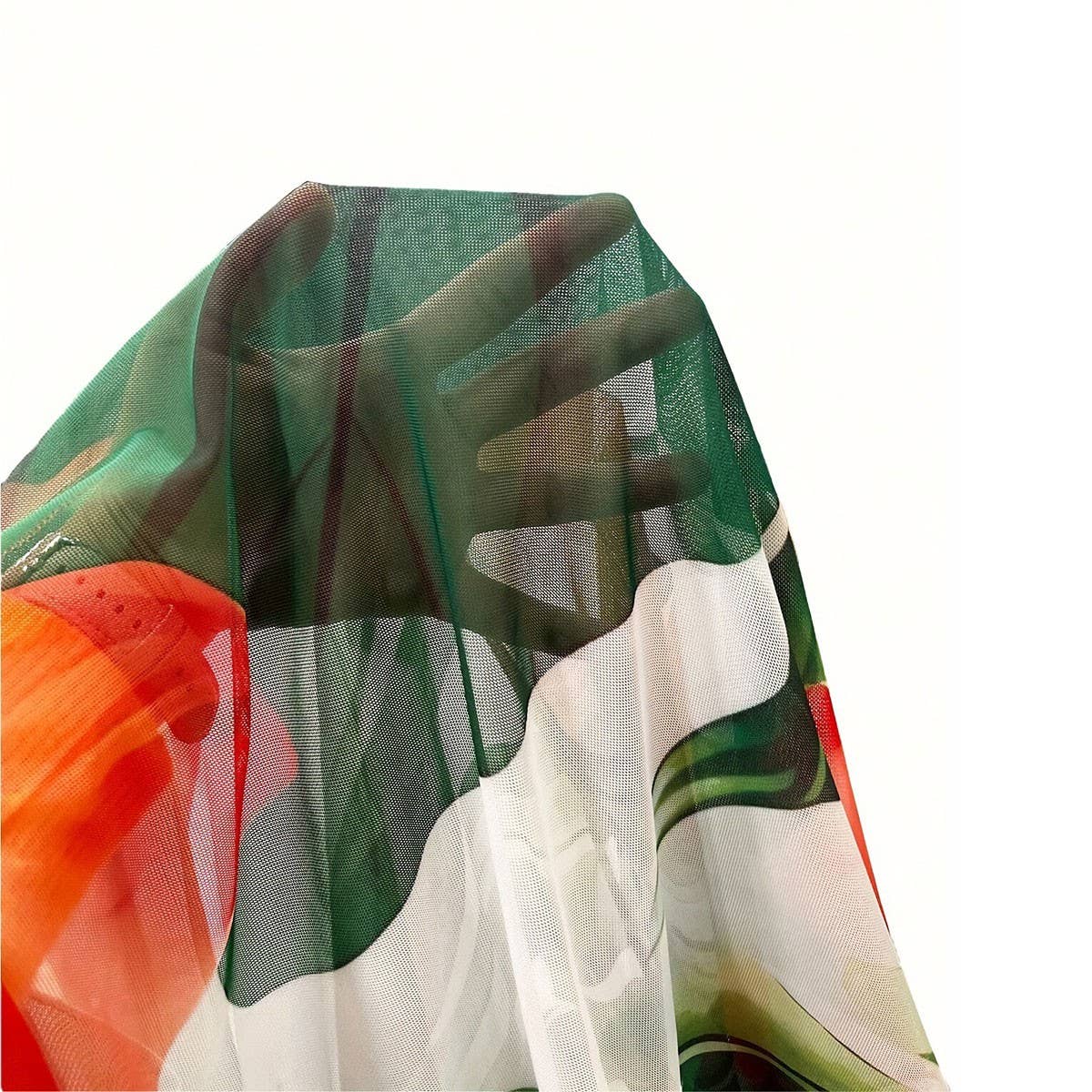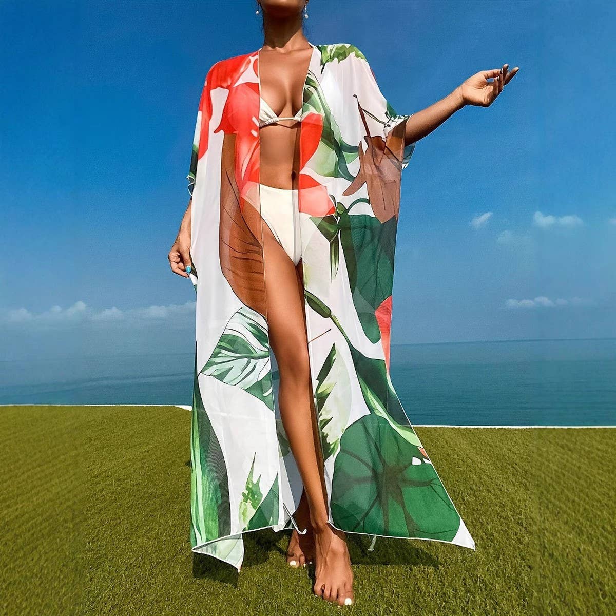 Plant Print Mesh Long Beach Cover-Up, Boho Style_CWBLS0470