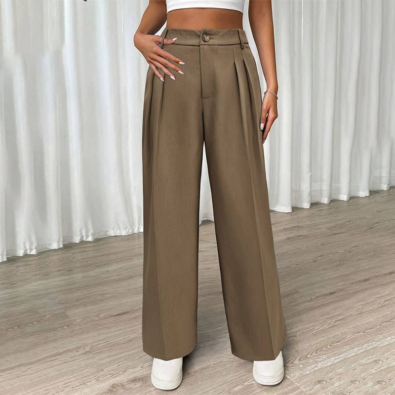 PLEATED BAGGY HIGH-WAISTED STRAIGHT PANTS