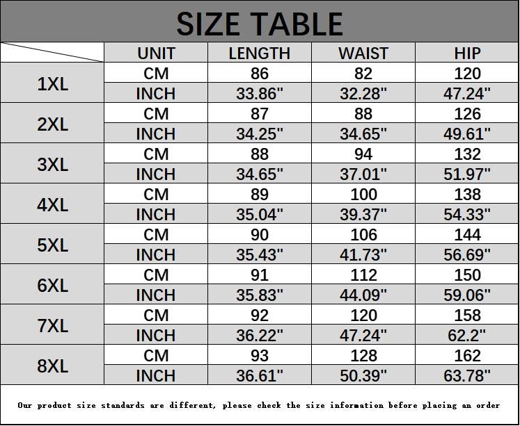 SIZES : 1XL,2XL,3XL,4XL,5XL,6XL,7XL,8XL