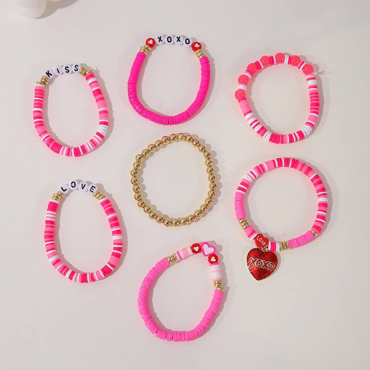 POLYMER CLAY HEART PENDANT LETTER BRACELET SET