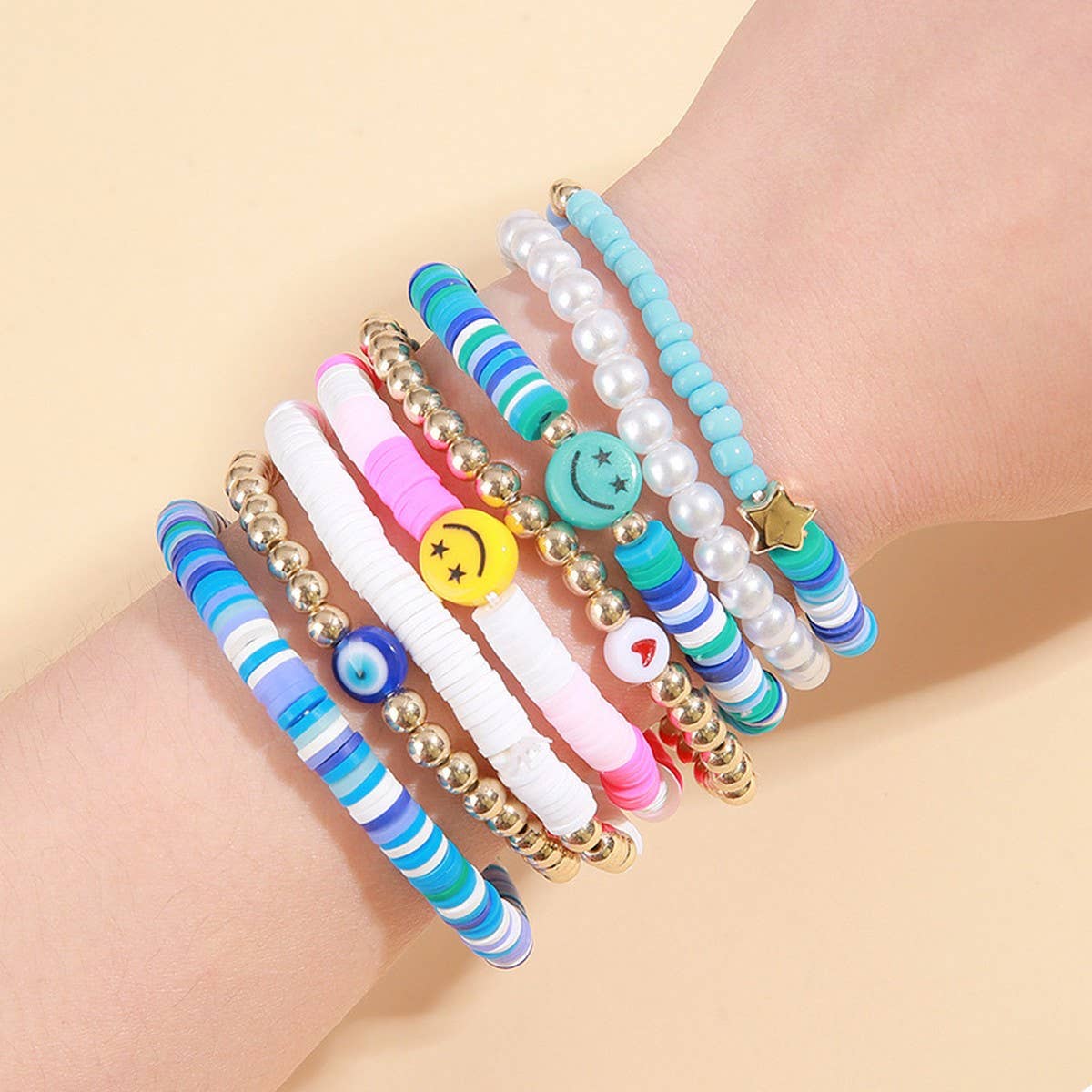 POLYMER CLAY HEART SMILEY FACE BRACELET SET_CWMM3515