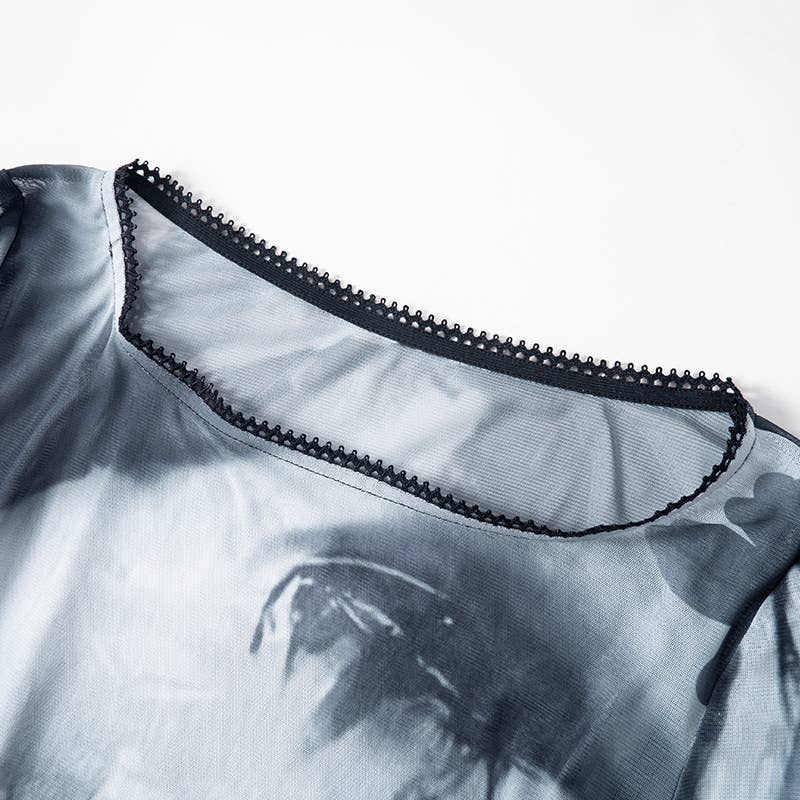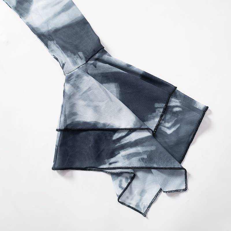 PRINTED CREW NECK DRESS WITH FLARED SLEEVES
