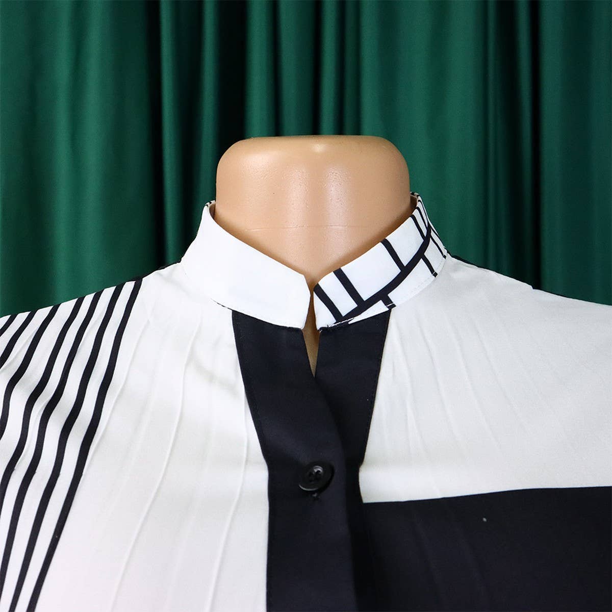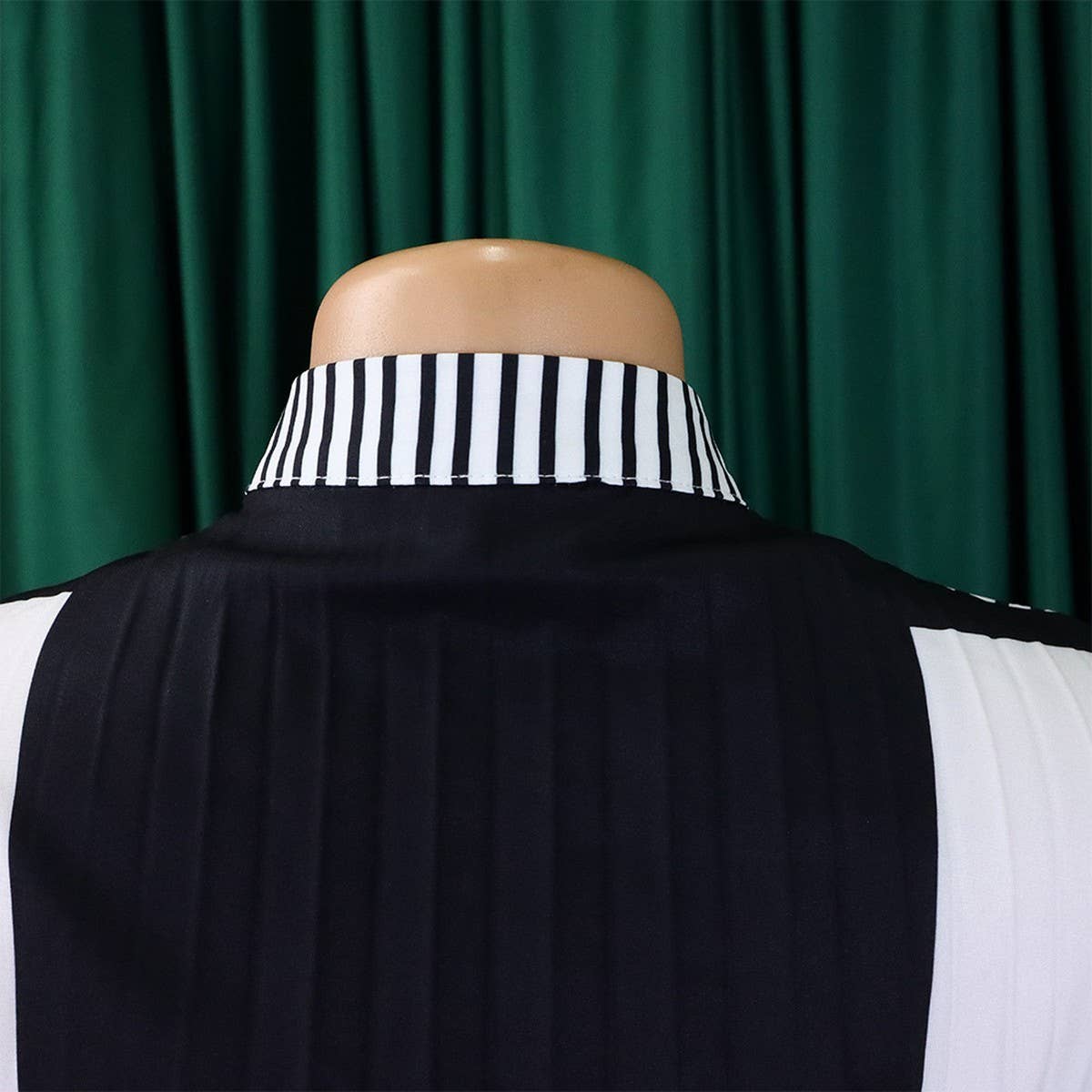 PRINTED PLEATED FASHION TIE CASUAL PLUS SIZE DRESS