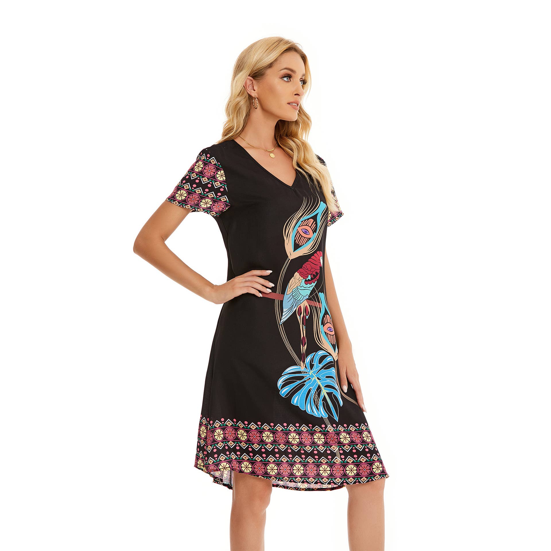 Printed skirt with loose V-neck