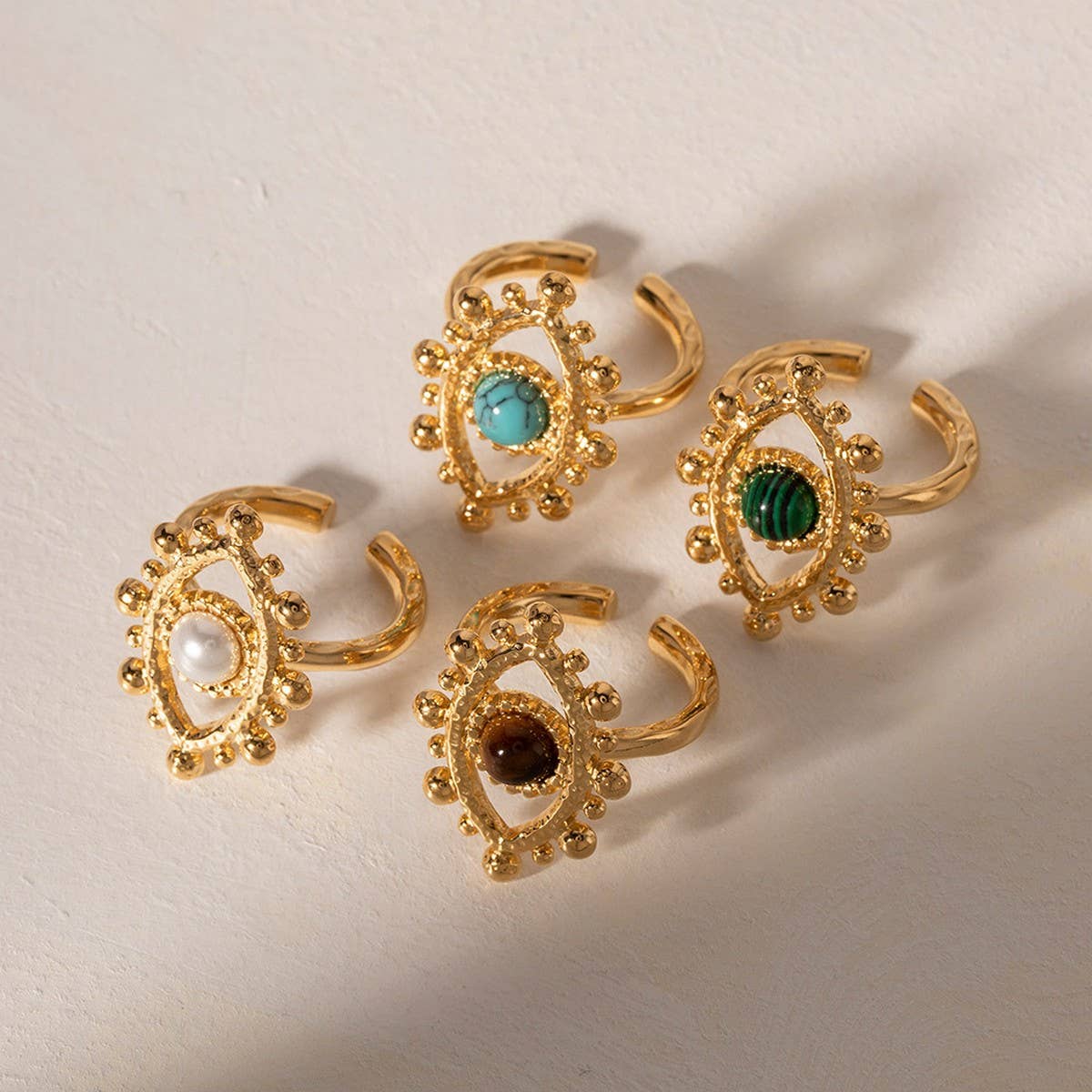 RETRO HOLLOW PATTERN NATURAL STONE RING