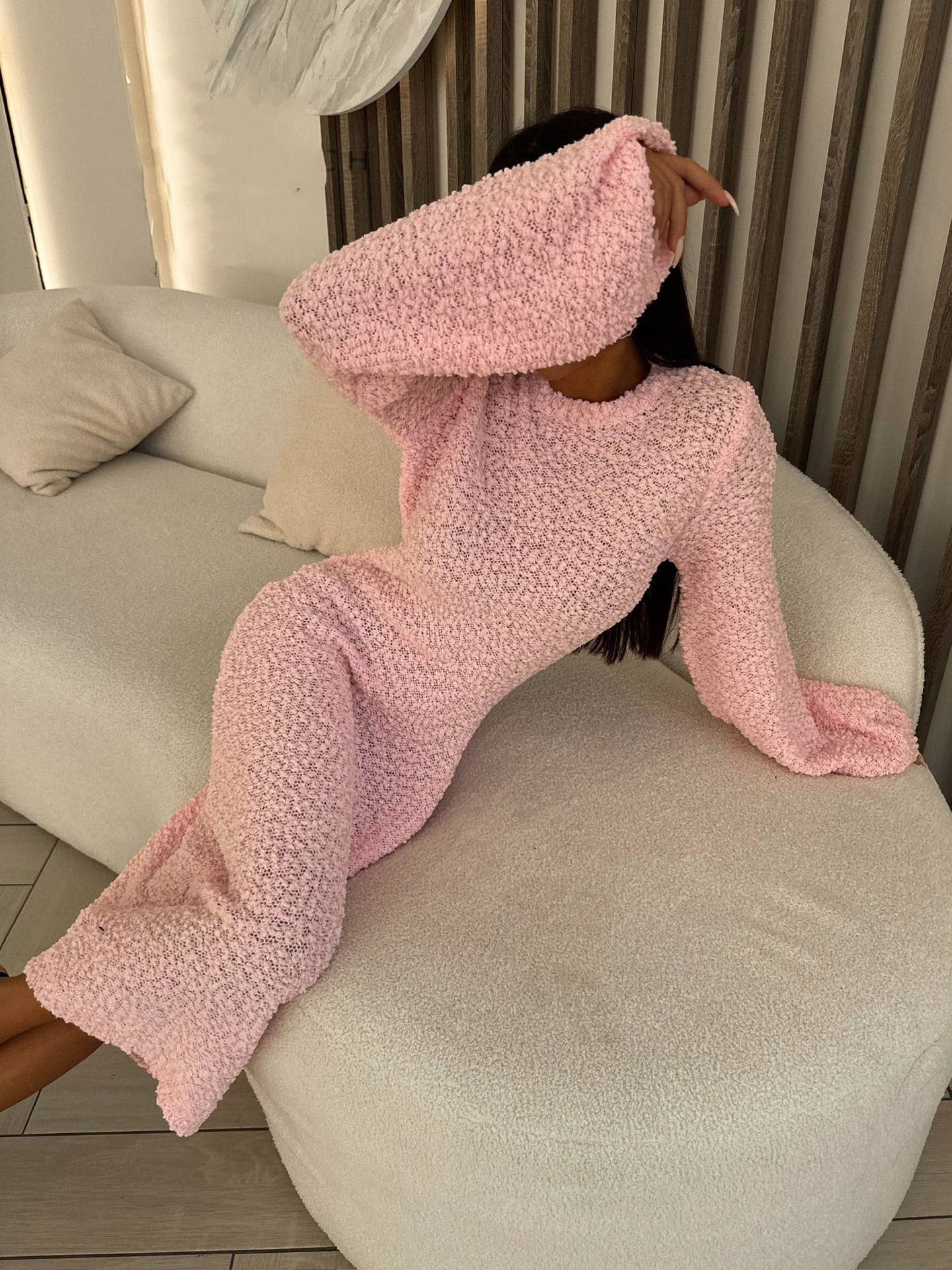 ROUND NECK LONG SLEEVE SOLID COLOR DRESS