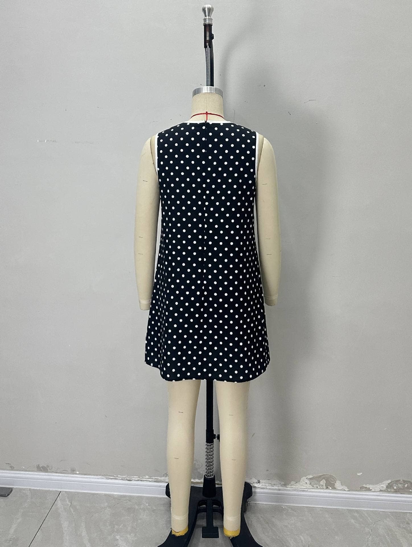 Round-neck sleeveless polka dot loose mini dress