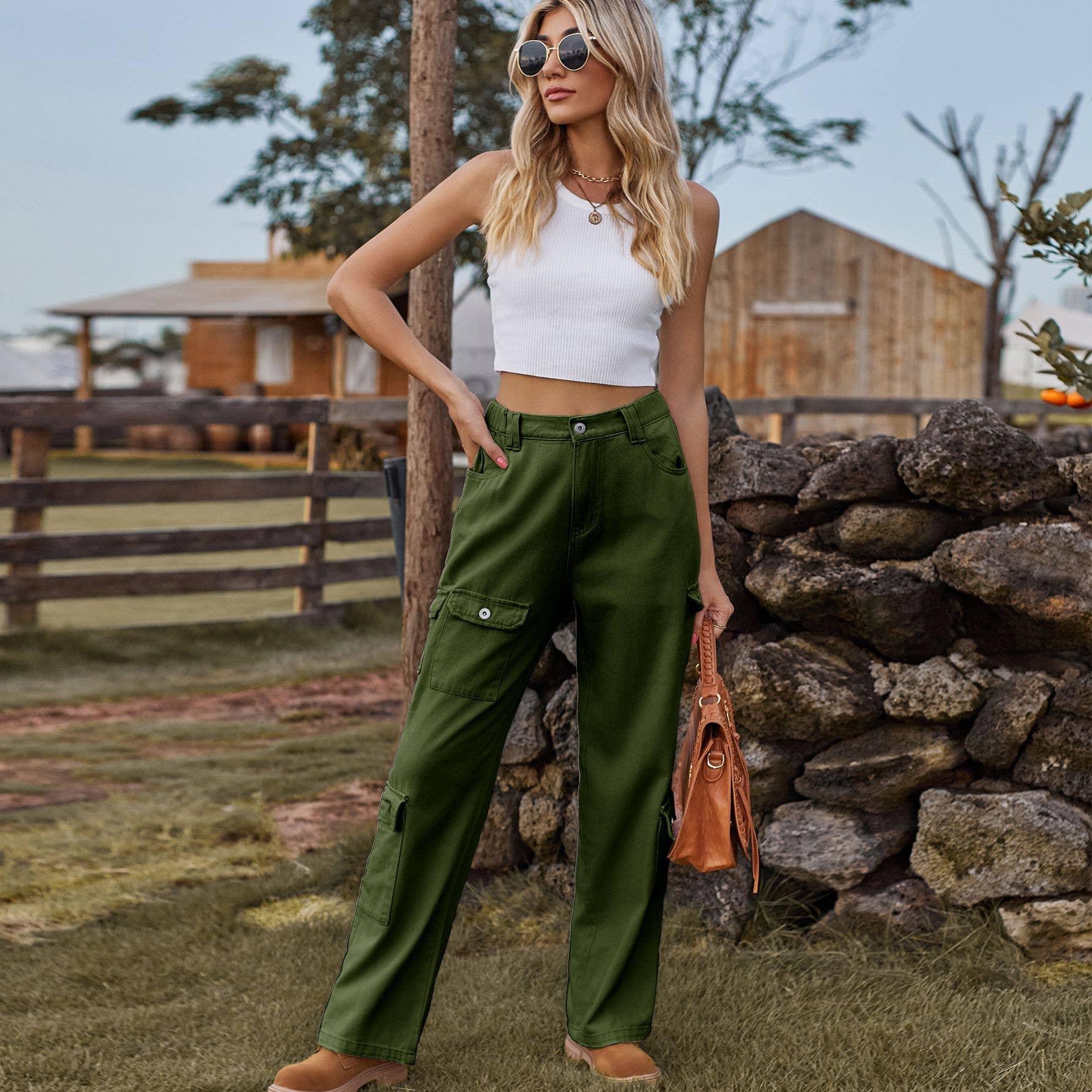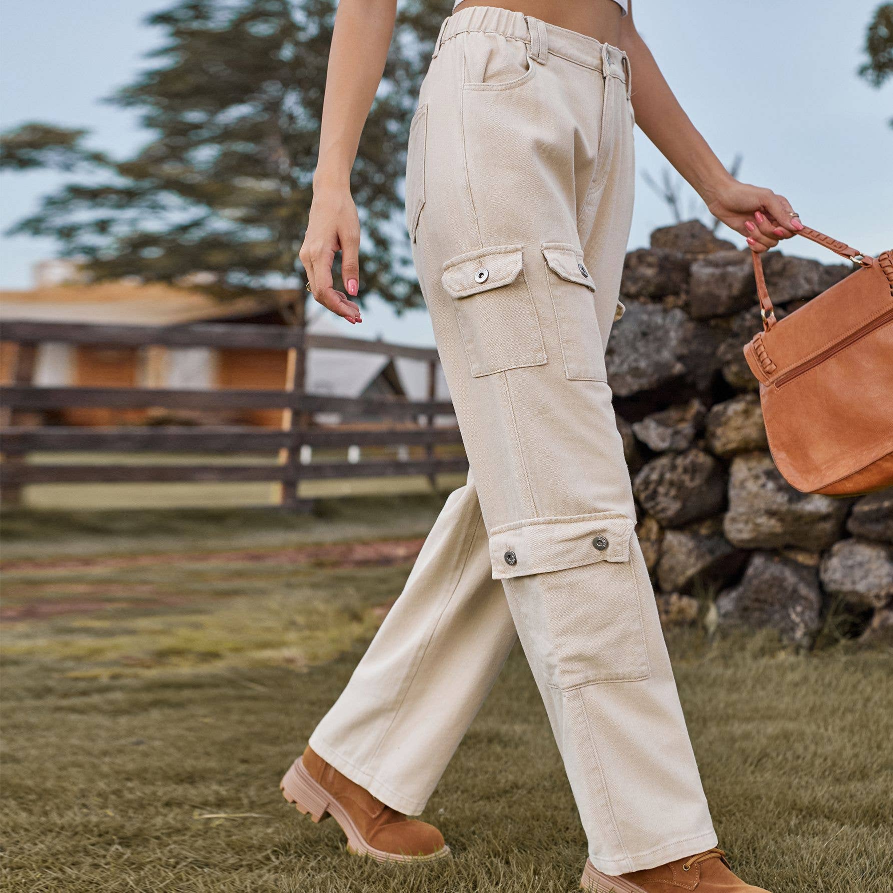 Semi-elastic personalized denim cargo pants