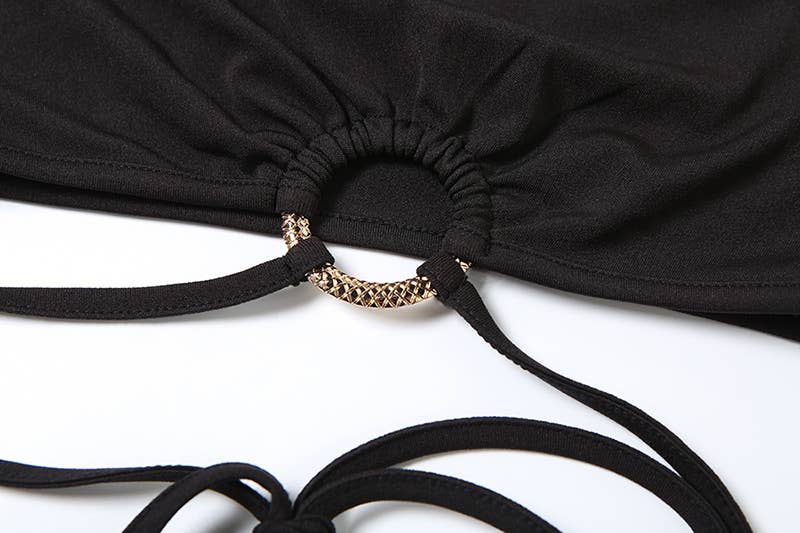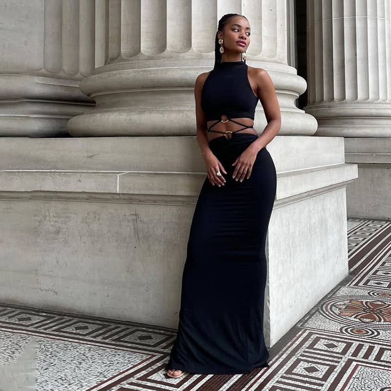 SEMI-HIGH NECK SEXY MIDRIFF HIP WRAP SLIM DRESS