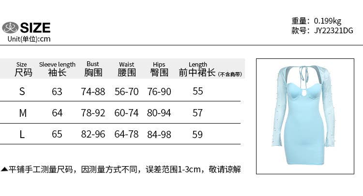 Sexy Beaded Long Sleeve Bodycon Mini Dress