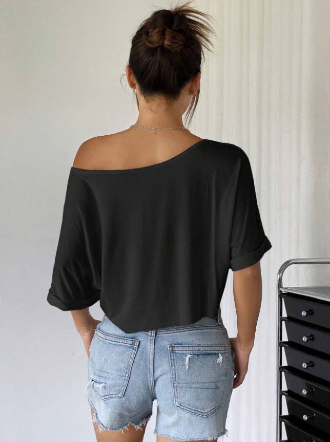 Sexy crop top and a large neckline short T-shirt
