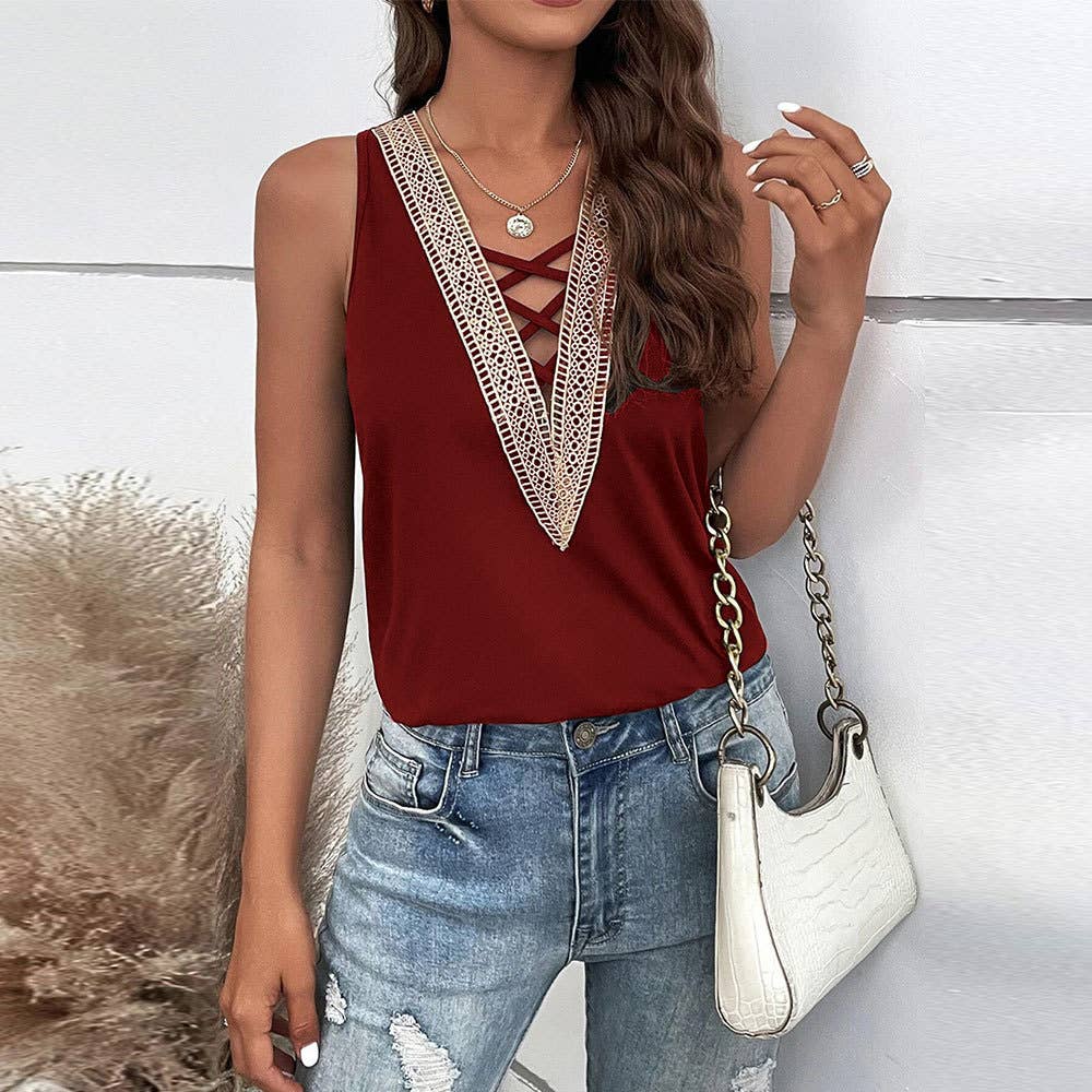 SEXY CUT-OUT V-NECK SLEEVELESS CASUAL VEST