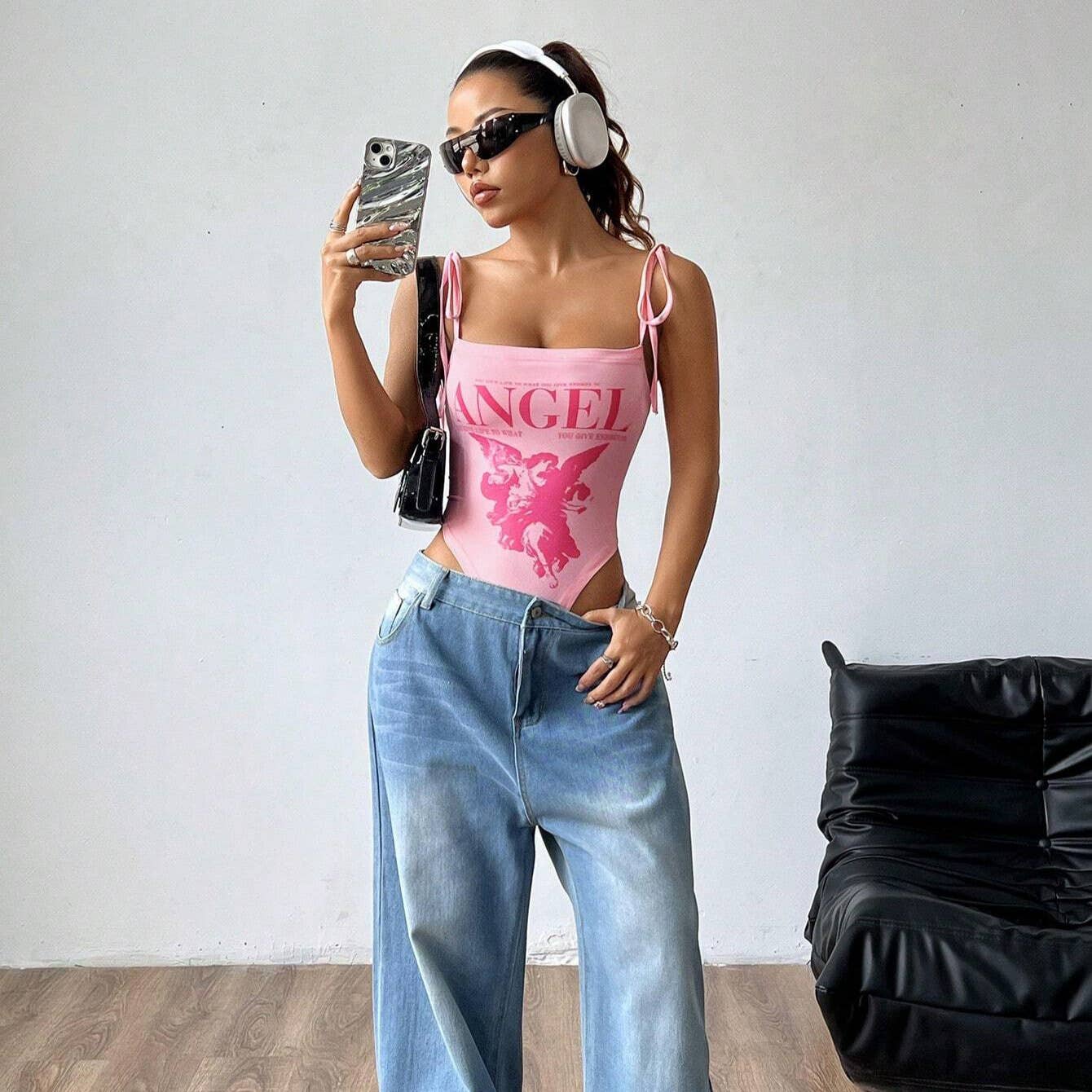 Sexy european style print tie design bodysuit 100% POLYESTER SIZES : S,M,L,XL MADE IN CHINA