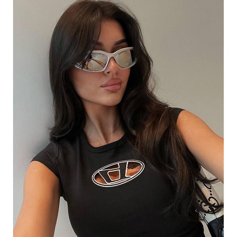 Sexy Hollow D Cut Embroidered Slim Crop Top