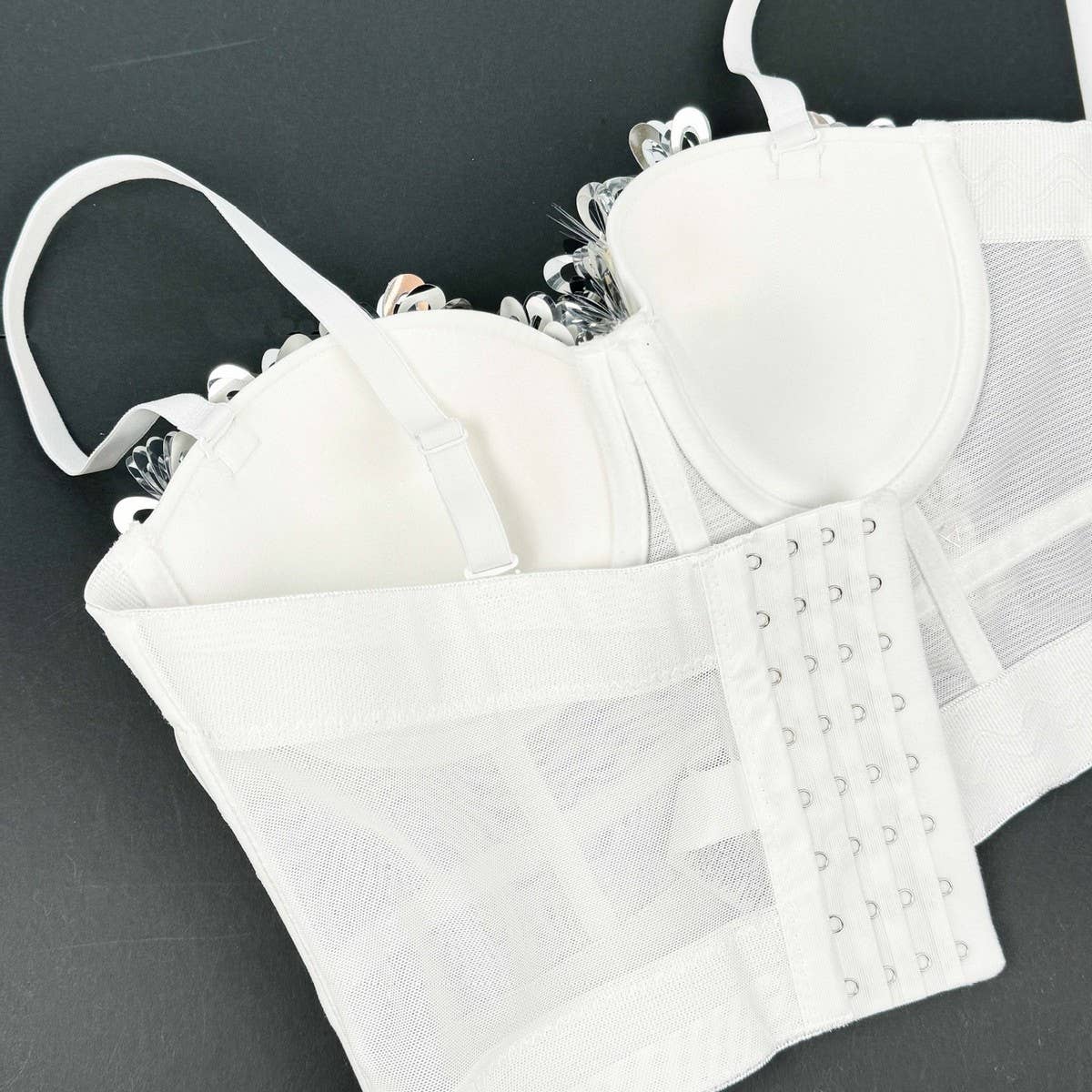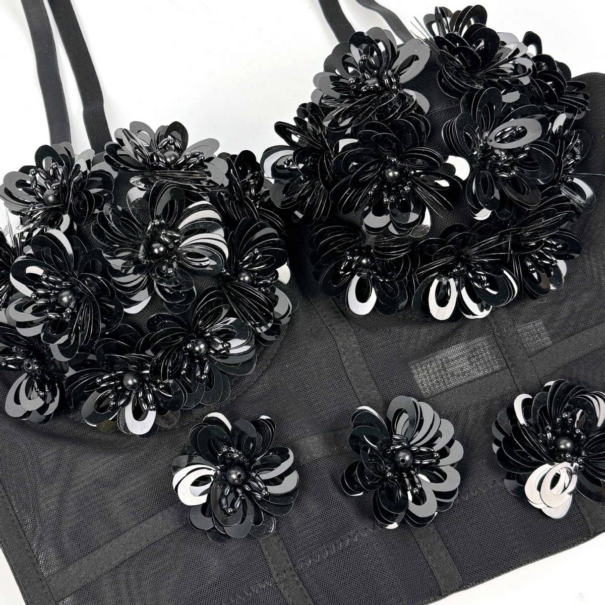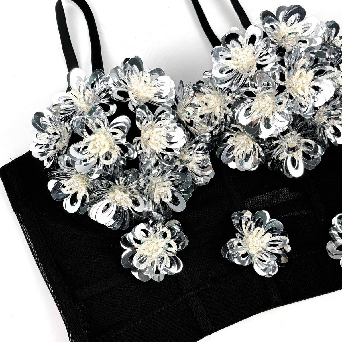 SEXY SEQUINED FLOWER HERRINGBONE CORSET
