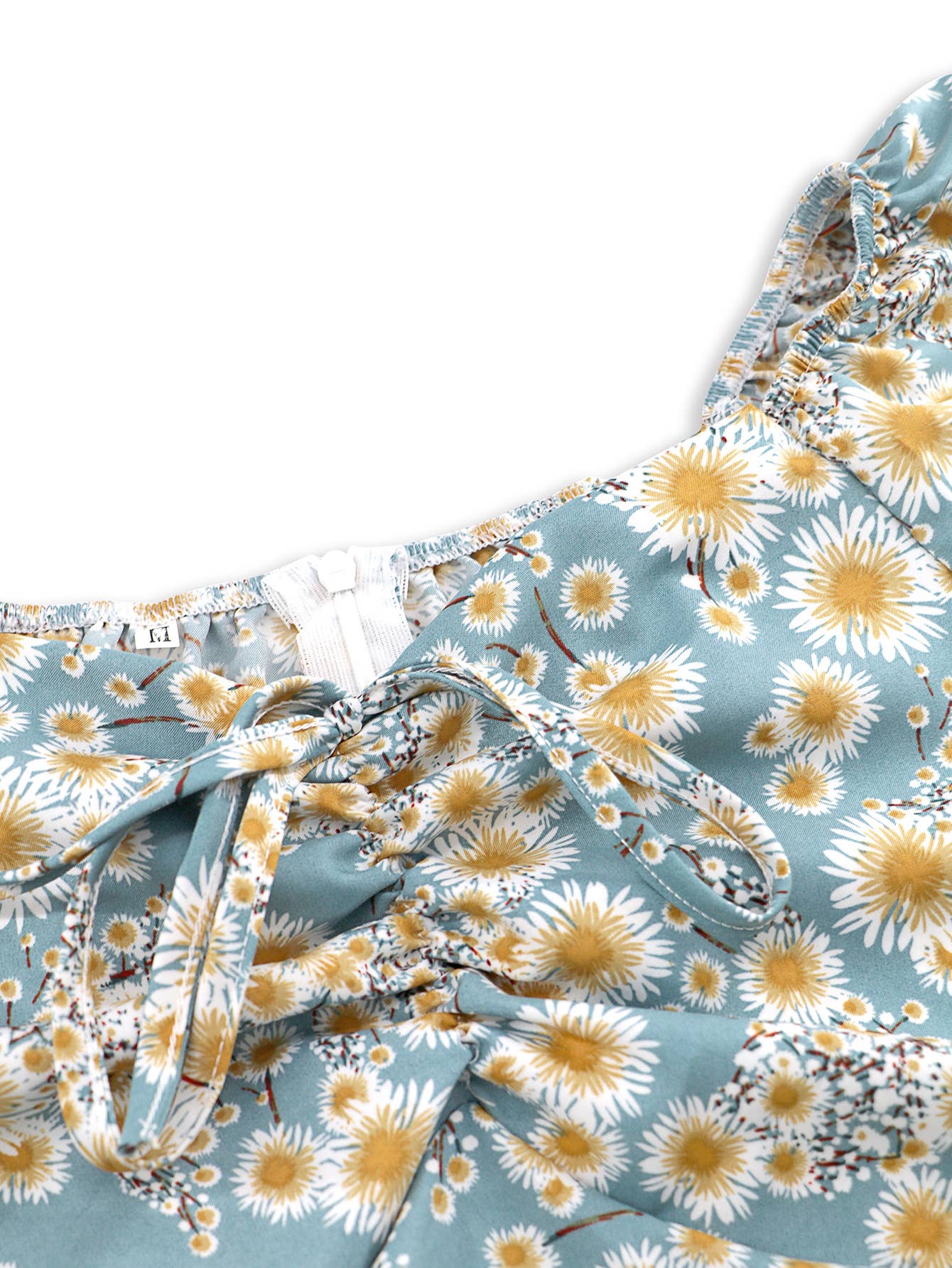 Sexy Short Fitted Floral Balloon Sleeve Dress