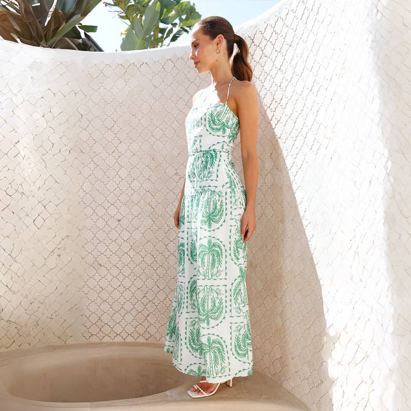 Sexy strapless floral tie-back long dress