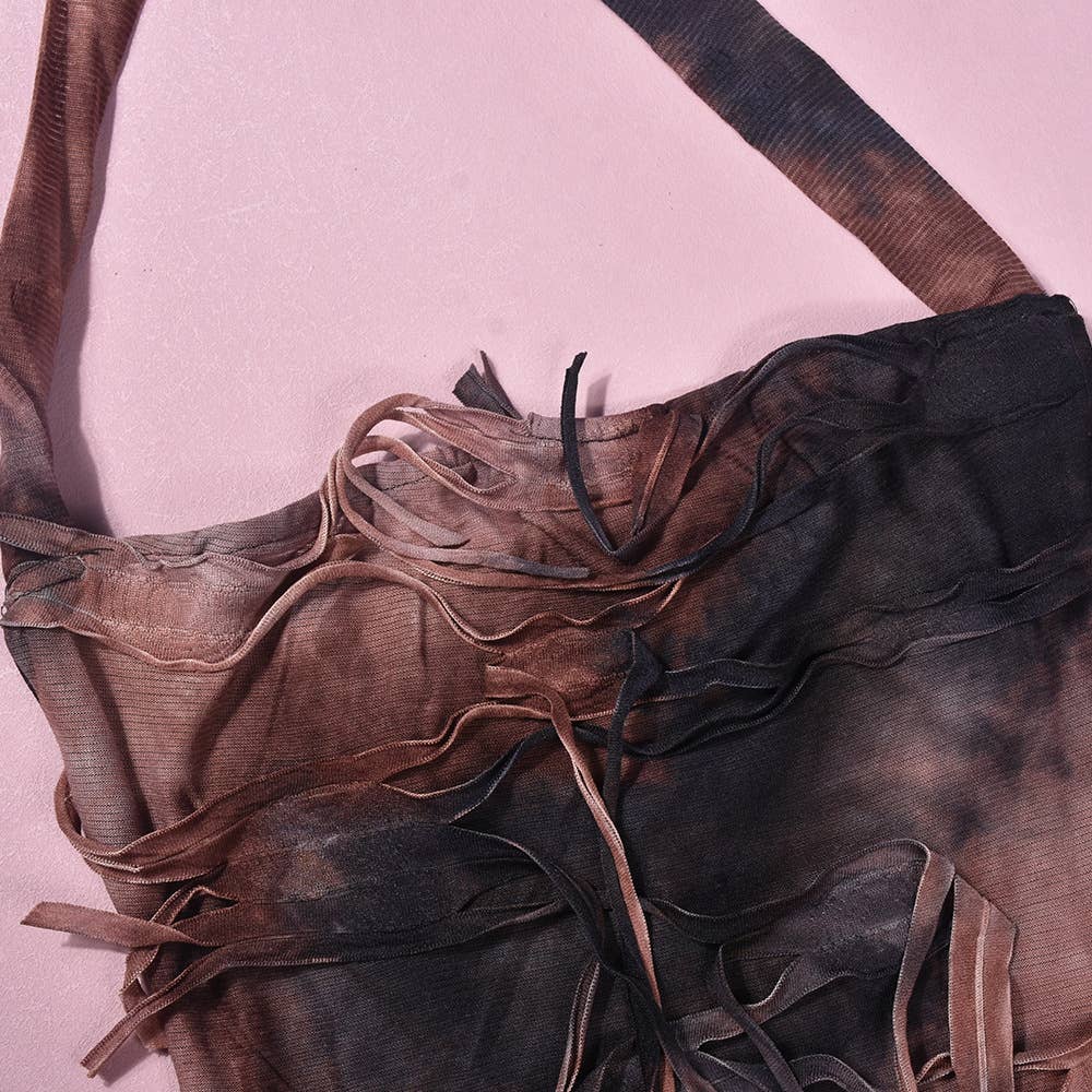 SEXY TIE-DYE FRINGE BEGGAR DRESS WITH SLIT