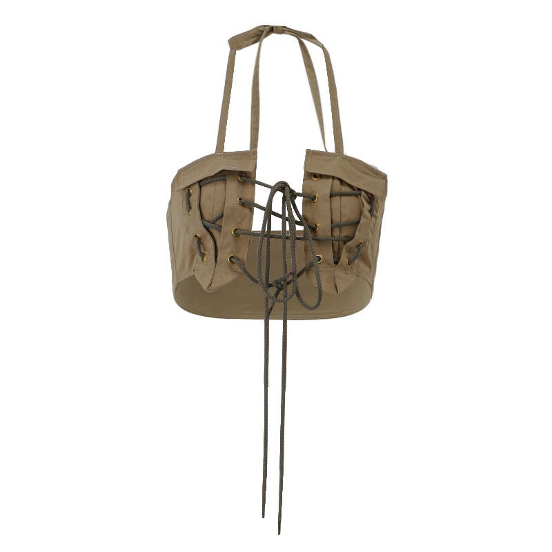 Sexy Y2K Halter Lace-Up Cutout Crop Tank Top