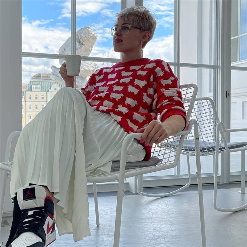 SHEEP PRINT LOOSE CASUAL PULLOVER SWEATER